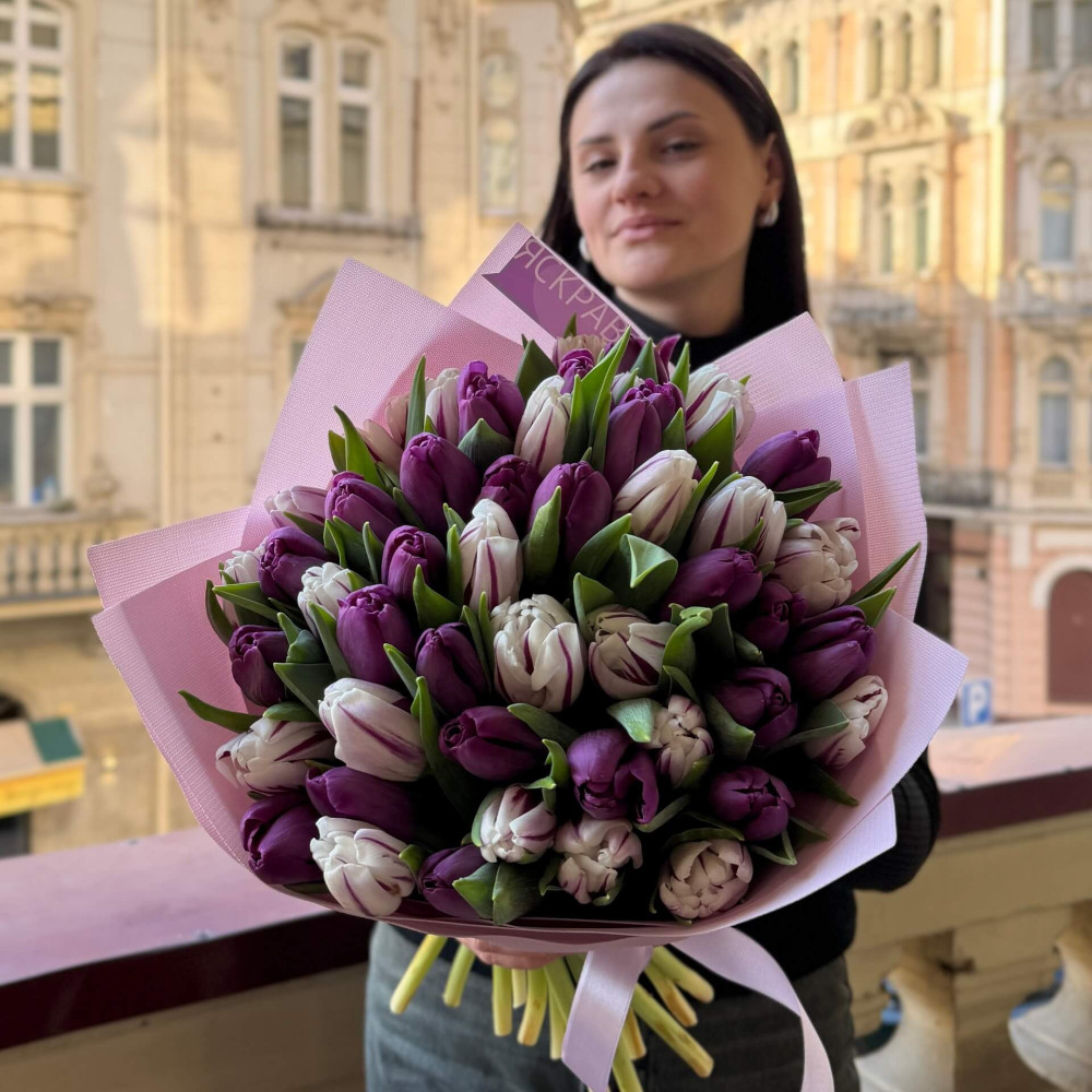 FAQ по Весняний мікс із 51 бузкового тюльпана «Крила лелеки»