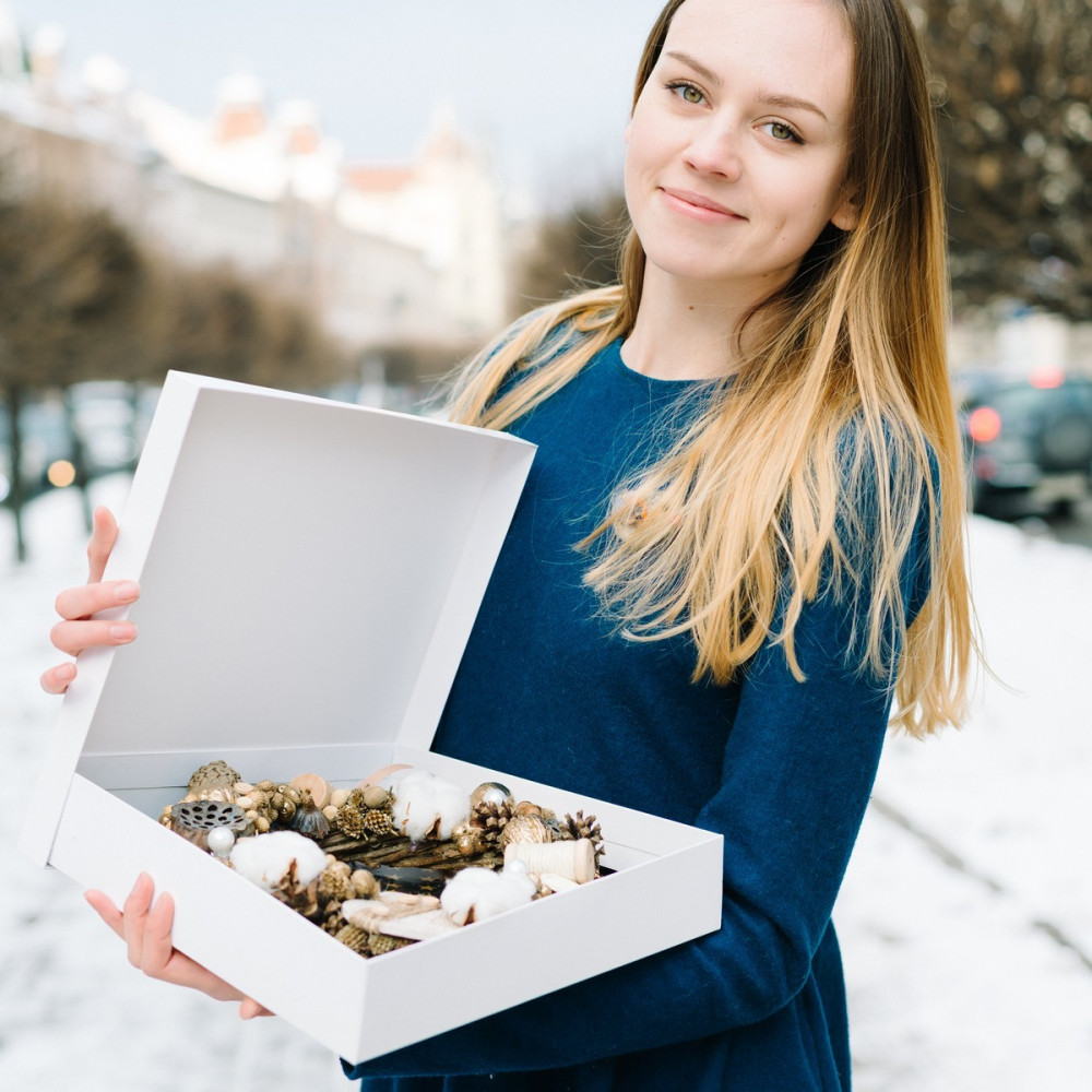 - А ще в конверт ми покладемо сюрприз! Який – ми не скажемо (інакше який це сюрприз), але можемо натякнути – можна на 100% гарантувати, що Ваш букет запам'ятають надовго!