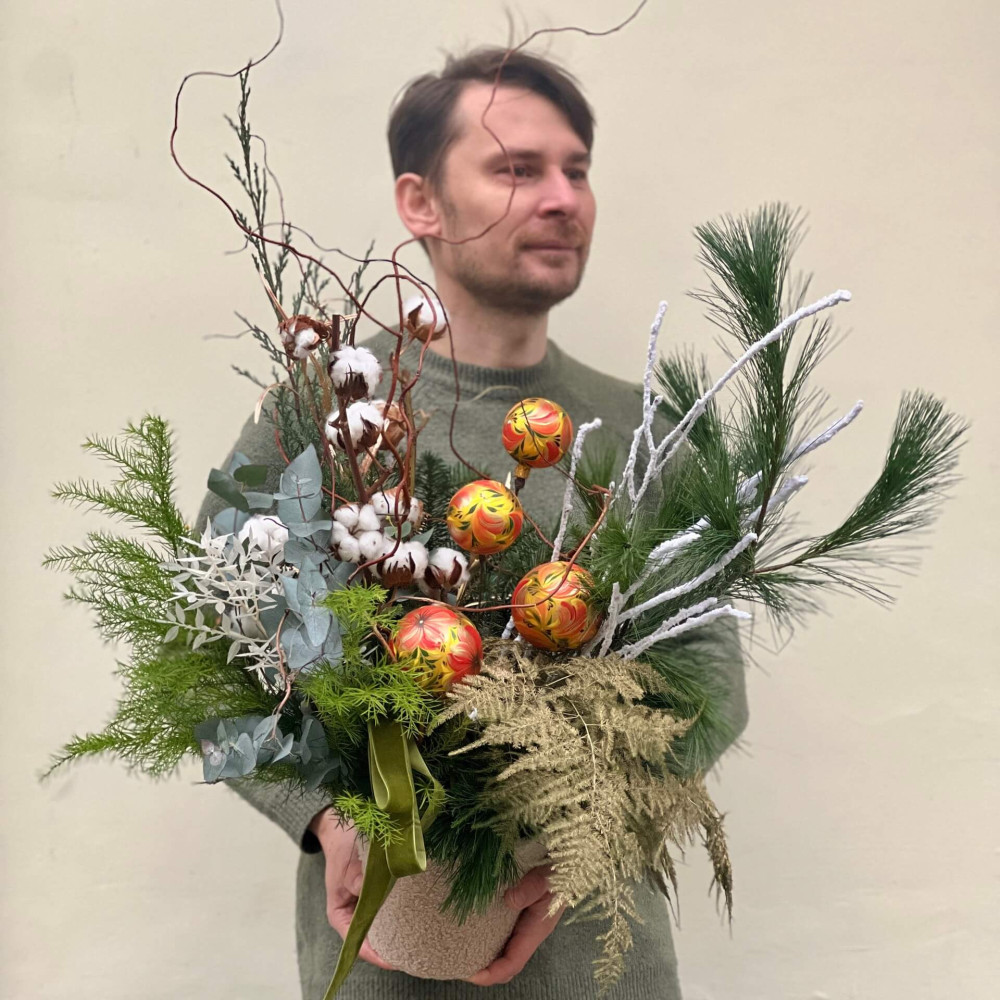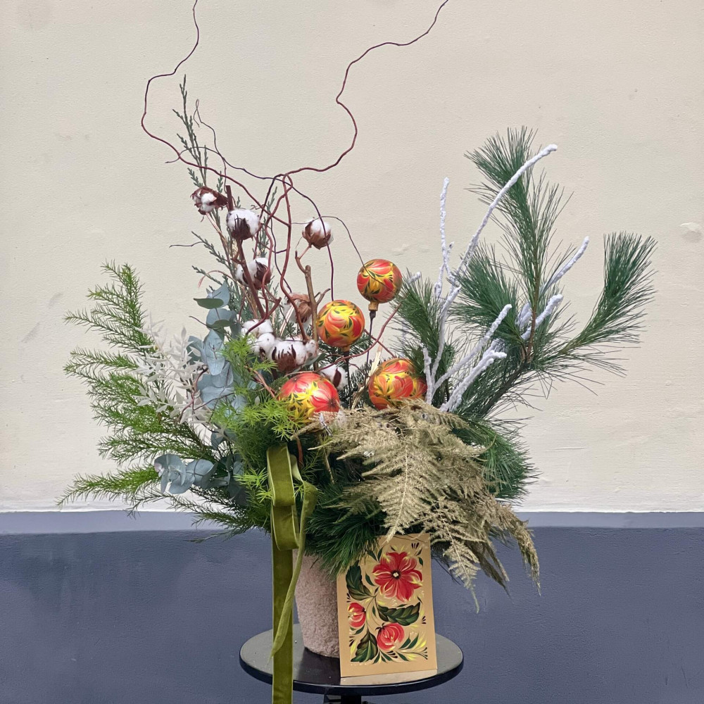 - Як замовити Вишукана святкова композиція з дизайнерськими іграшками ручної роботи «Різдвяна гармонія»? ❯