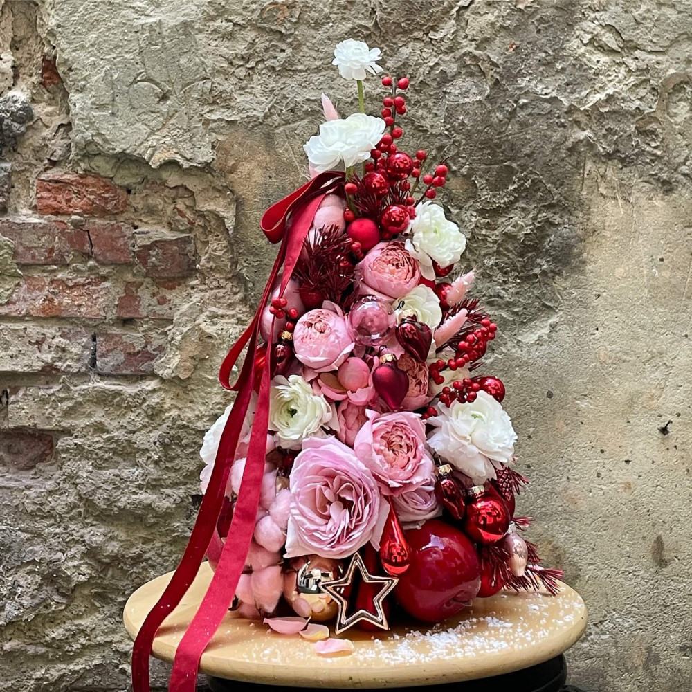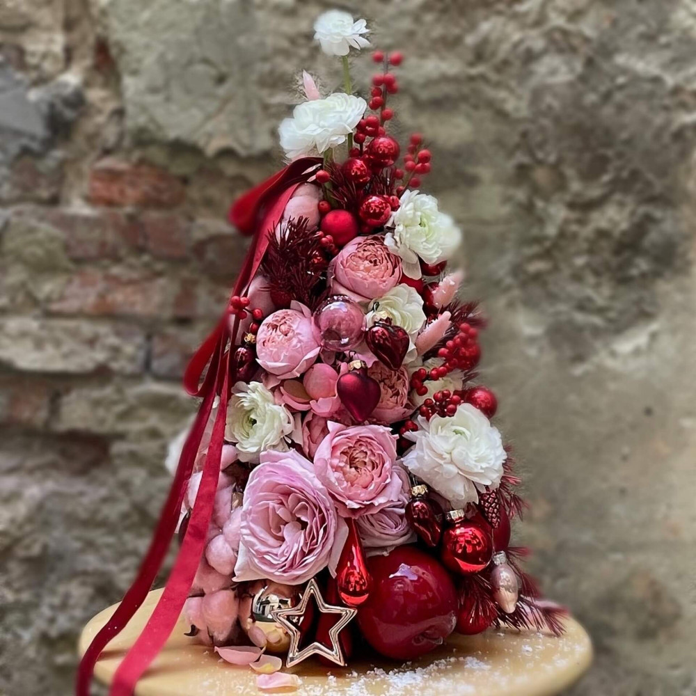 Чи ти колись бачив подібну красу? Ялинка, зроблена з квітів та різдвяних іграшок. Ну дійсно, справжнє заквітчане Різдво!