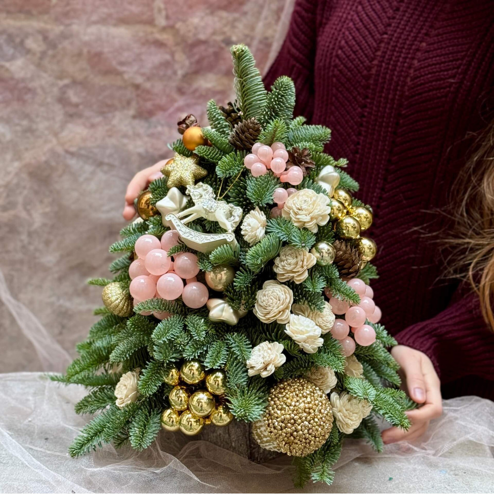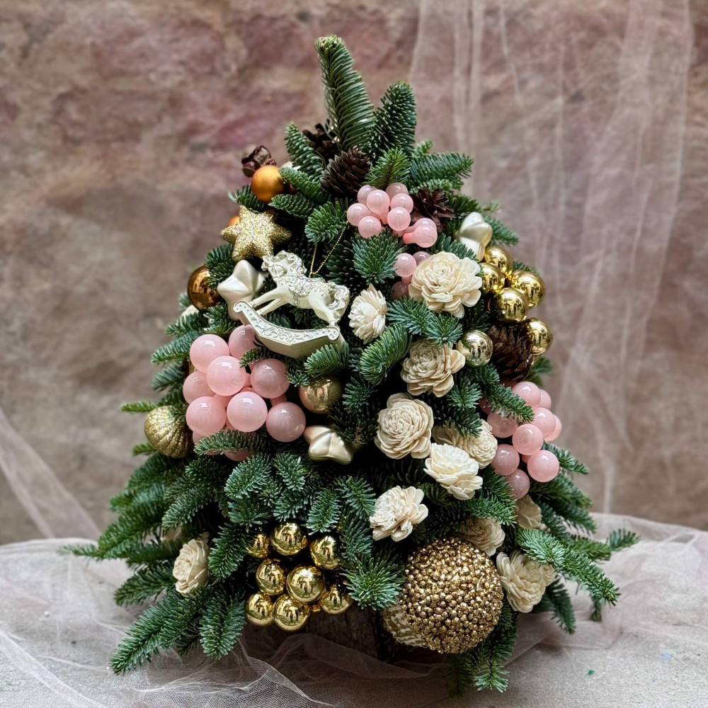 - Як замовити Ялиночка із рожево-золотистим декором «Романтичне Різдво»? ❯