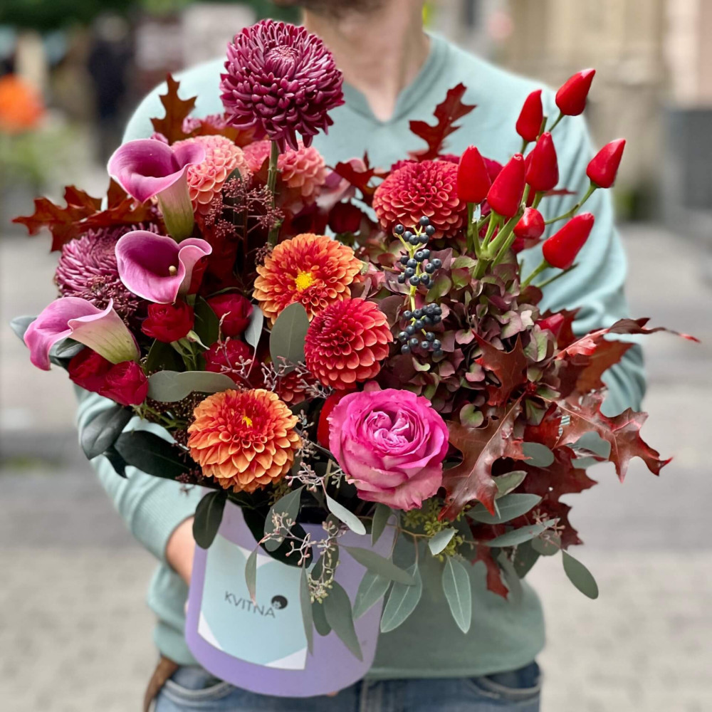 І це, до речі, зовсім не обов'язково плюси, це особливості, які потрібно розуміти. Тоді і вибір «де купити букет у Львові» зробити буде значно простіше.- Кожен букет Kvitna унікальний. Це означає, якщо Ви замовите у нас якийсь із букетів на сайті, то Ви не отримаєте точнісінько такий же. Деяких це бентежить, такі люди не хочуть «ризикувати», бажають «в точності, як на світлині». У «Квітна» кожен букет — це творчий пошук, це захоплення, злиття з квітами, образом одержувача і завданням. Так, ми можемо прийняти за вектор, зробити схожий букет, в тому ж стилі, кольоровій гамі, з тих самих квітів ... Але нам нудно робити за шаблоном. Адже букет, представлений на зображенні, робився для іншої людини, з іншого приводу, під інший настрій і натхнення. У Вас буде все по-іншому.