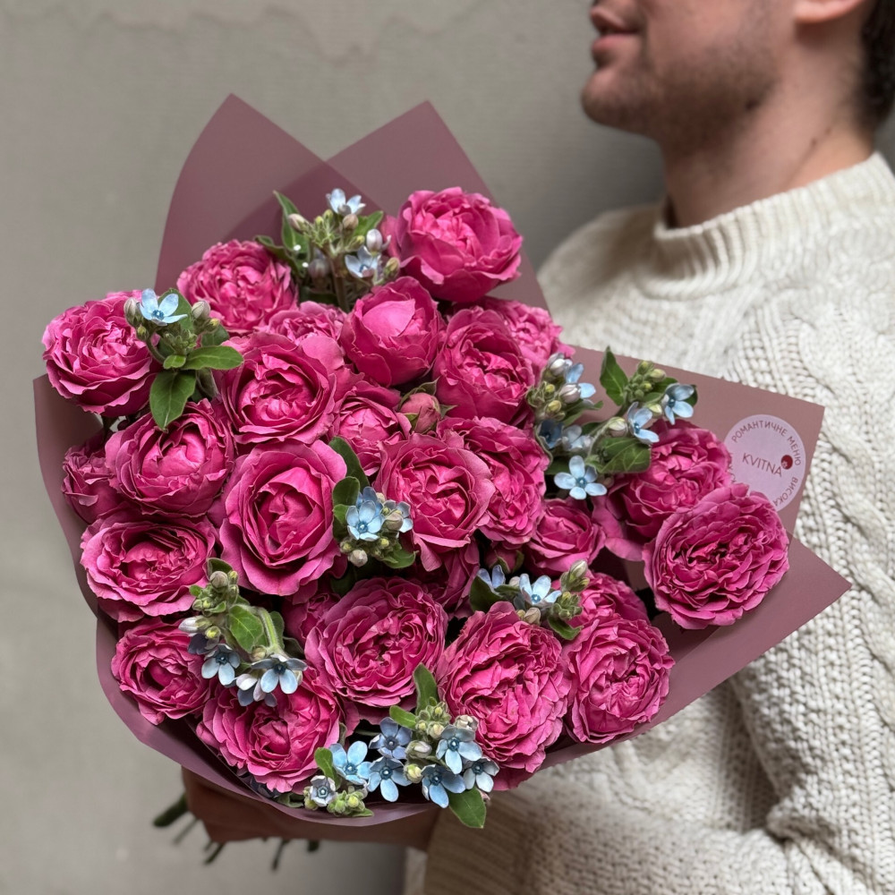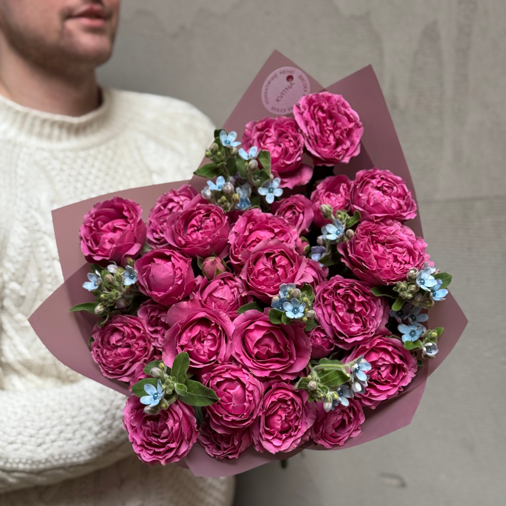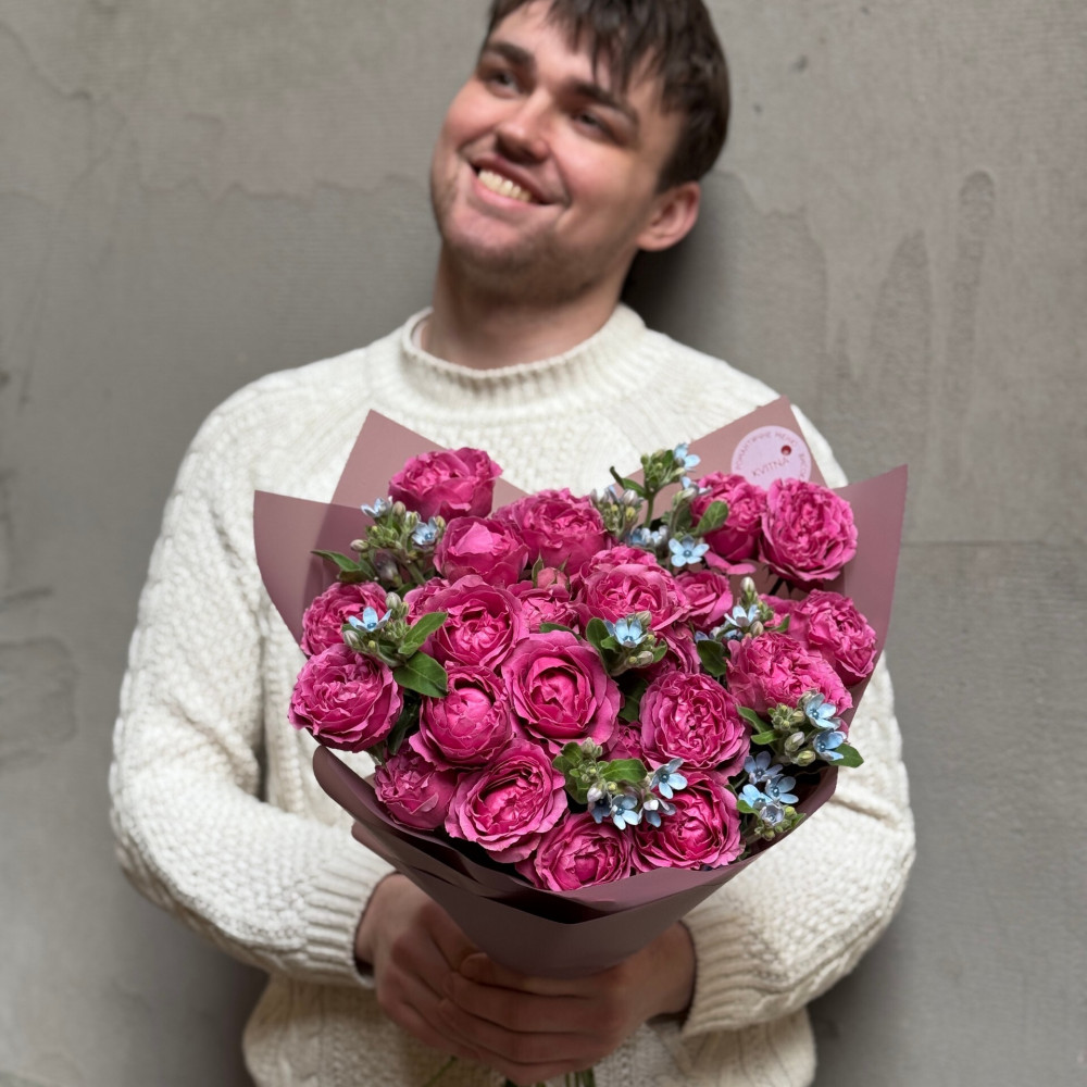 - Як замовити Яскрава кущова піоновидна троянда Misty Bubbles та оксіпеталум у букеті «Малинові хмаринки»? ❯