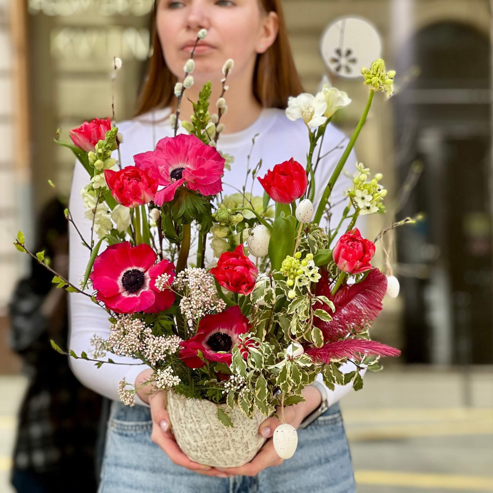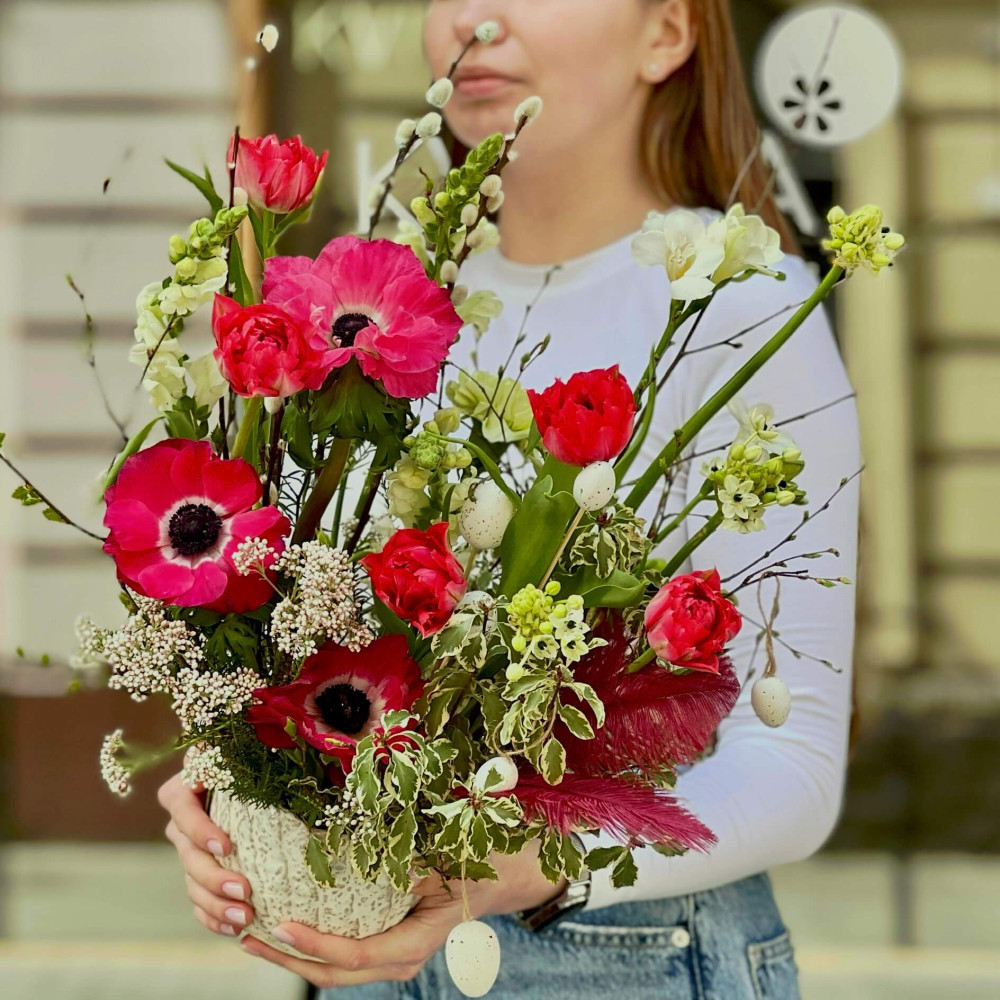 - Як замовити Яскрава великодня композиція з анемонами «Весняна благодать»? ❯