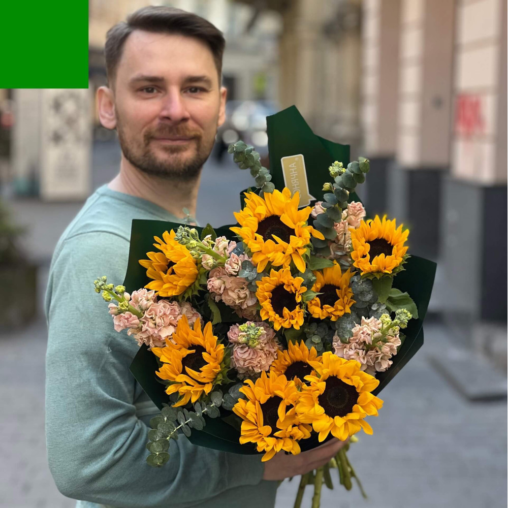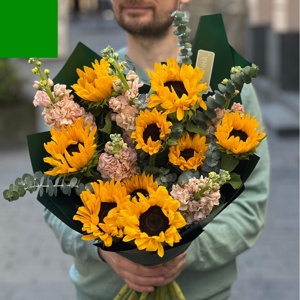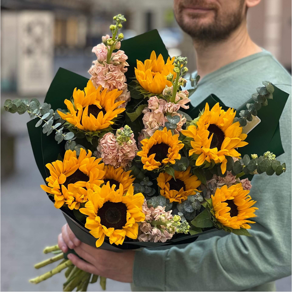 Квіти: Соняшник, Матіола, Евкаліпт