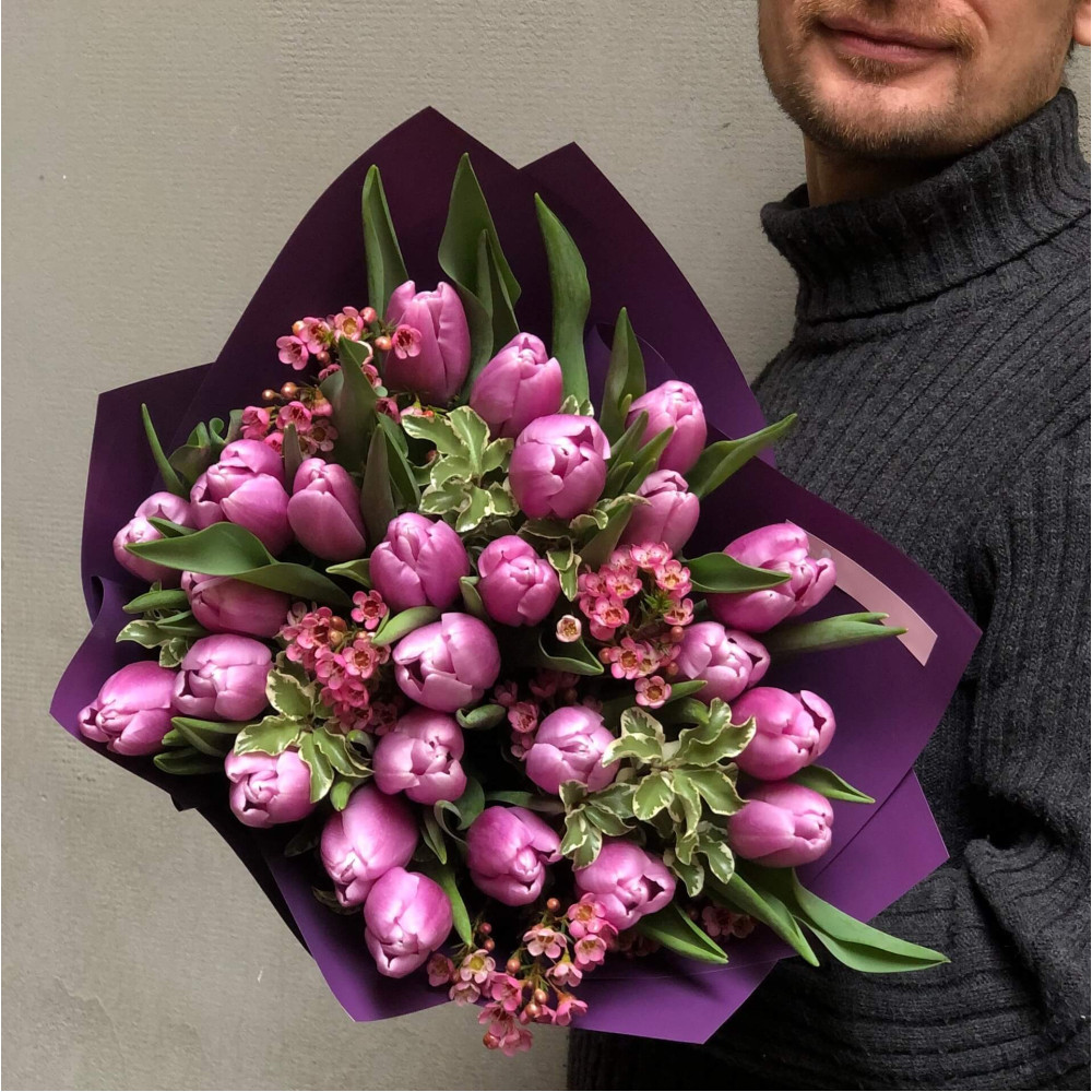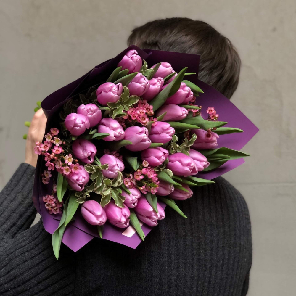 - Як замовити Яскравий букет із 25 тюльпанів та хамелаціума «Весняна карамелька»? ❯