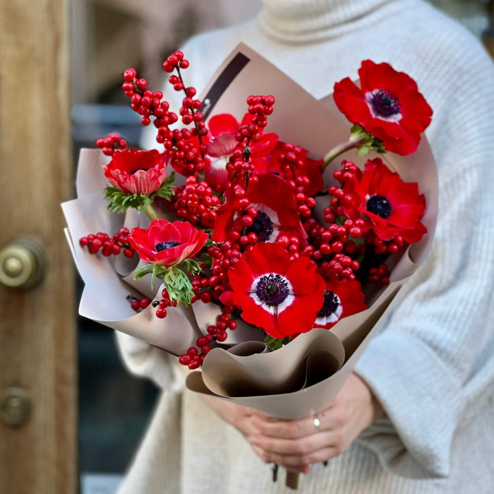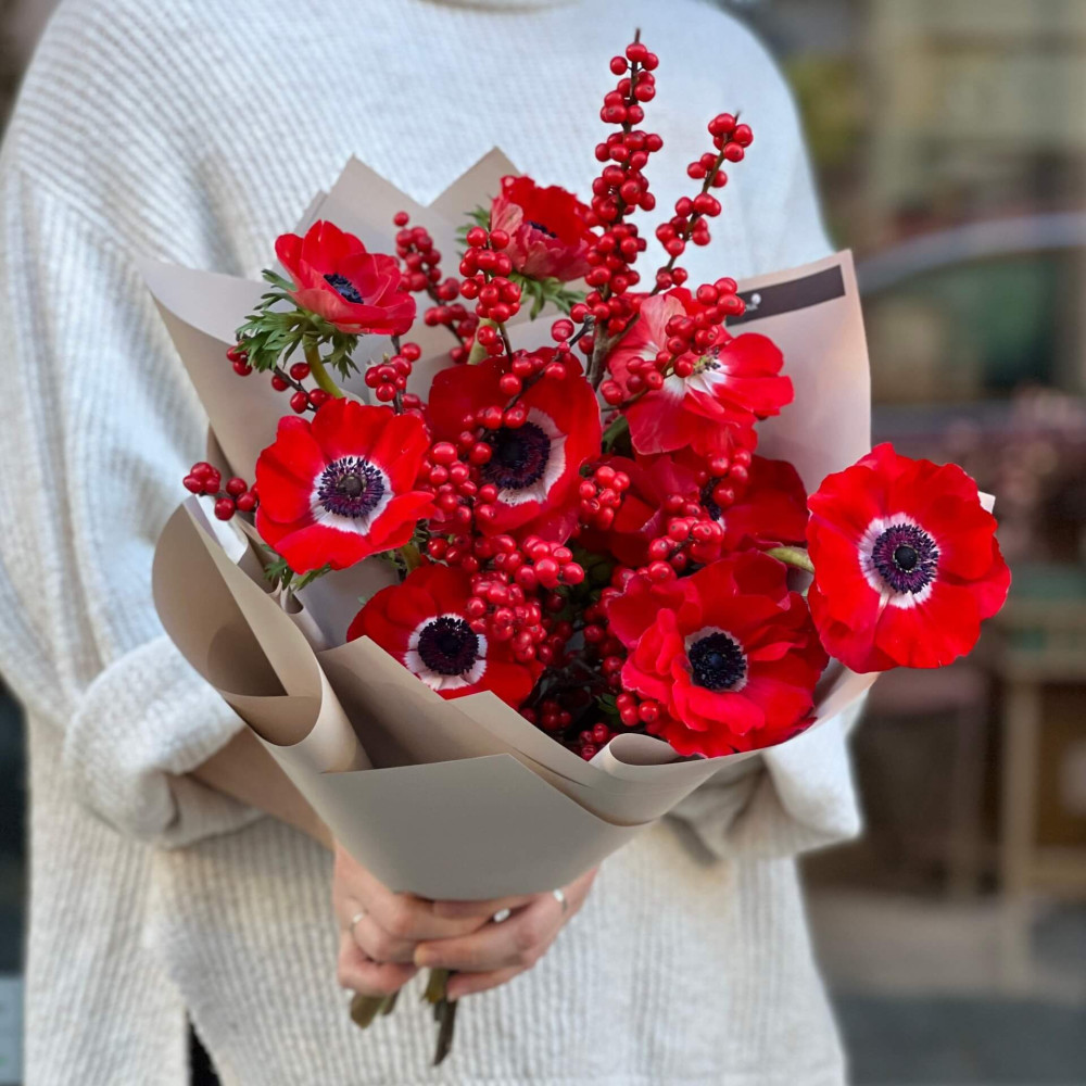 Пристрасть червоних анемон та жар ягідок ілексу дарують тобі своє тепло, немов поцілунок, який тебе застав зненацька – тому що ти є!