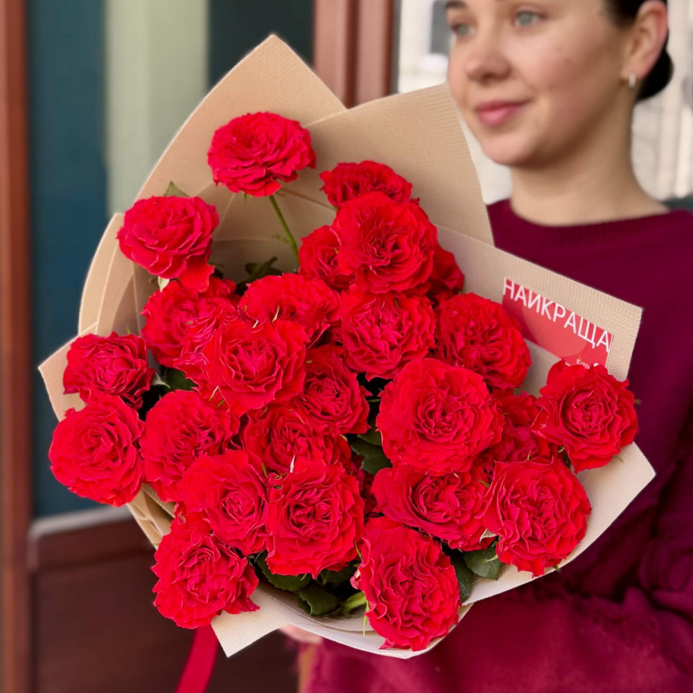 - Як замовити Яскравий букет із кущової піоновидної троянди «Полумʼяна пристрасть»? ❯