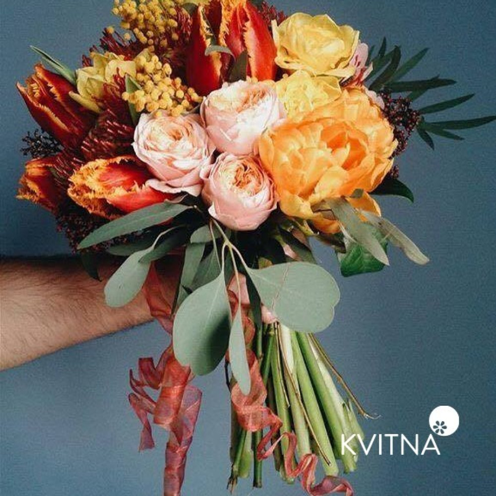 І це, до речі, зовсім не обов'язково плюси, це особливості, які потрібно розуміти. Тоді і вибір «де купити букет у Львові» зробити буде значно простіше.- Кожен букет Kvitna унікальний. Це означає, якщо Ви замовите у нас якийсь із букетів на сайті, то Ви не отримаєте точнісінько такий же. Деяких це бентежить, такі люди не хочуть «ризикувати», бажають «в точності, як на світлині». У «Квітна» кожен букет — це творчий пошук, це захоплення, злиття з квітами, образом одержувача і завданням. Так, ми можемо прийняти за вектор, зробити схожий букет, в тому ж стилі, кольоровій гамі, з тих самих квітів ... Але нам нудно робити за шаблоном. Адже букет, представлений на зображенні, робився для іншої людини, з іншого приводу, під інший настрій і натхнення. У Вас буде все по-іншому.
