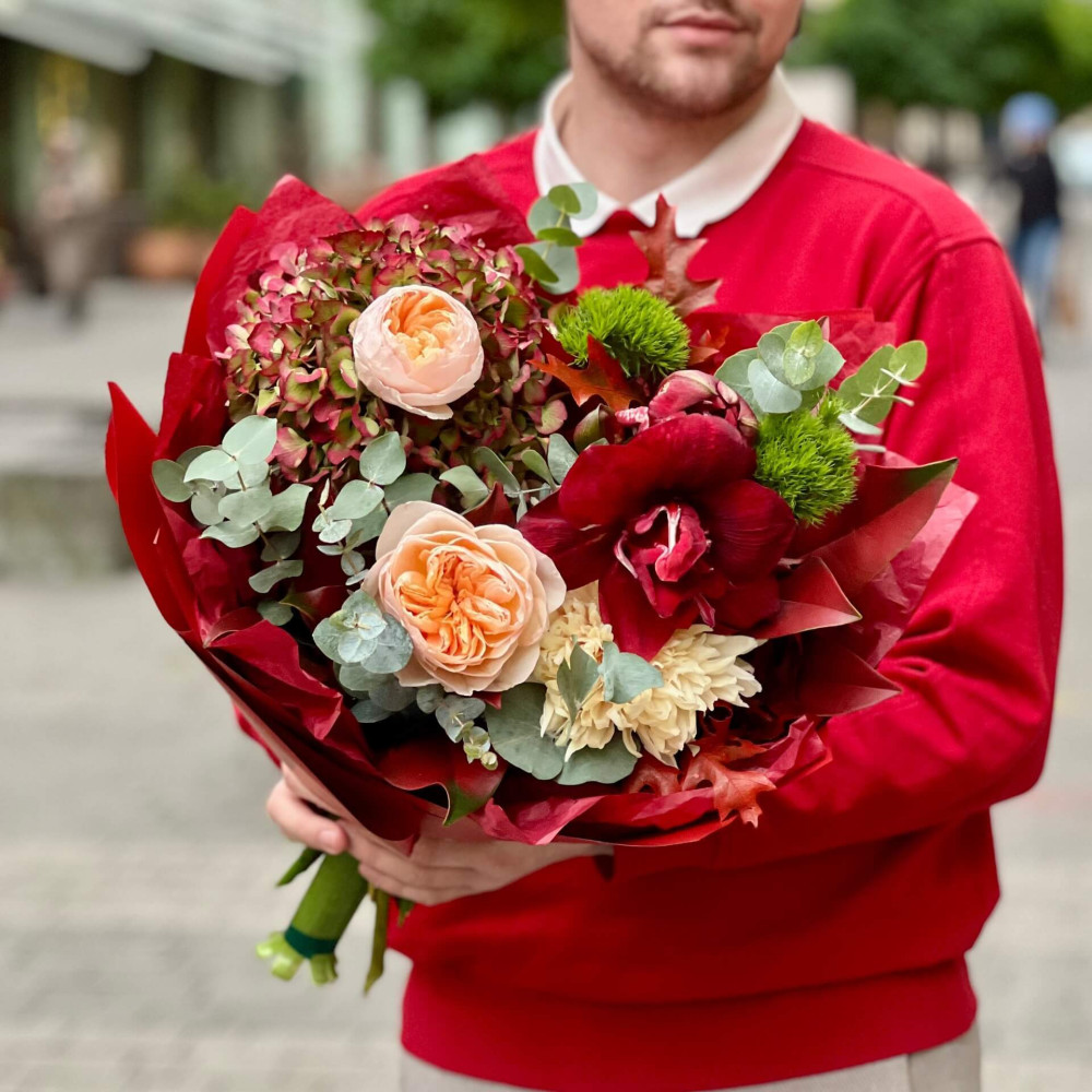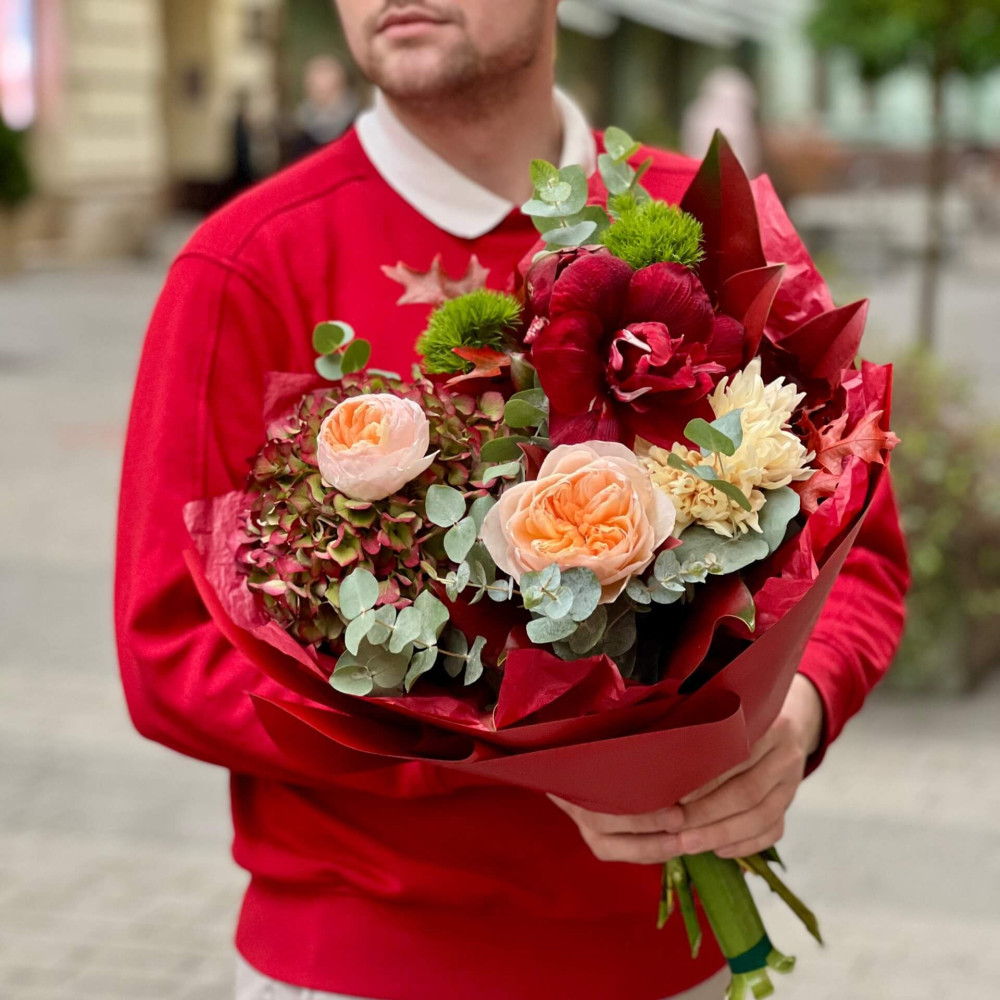 - Як замовити Яскравий букет з амарилісом «Тепла осінь»? ❯