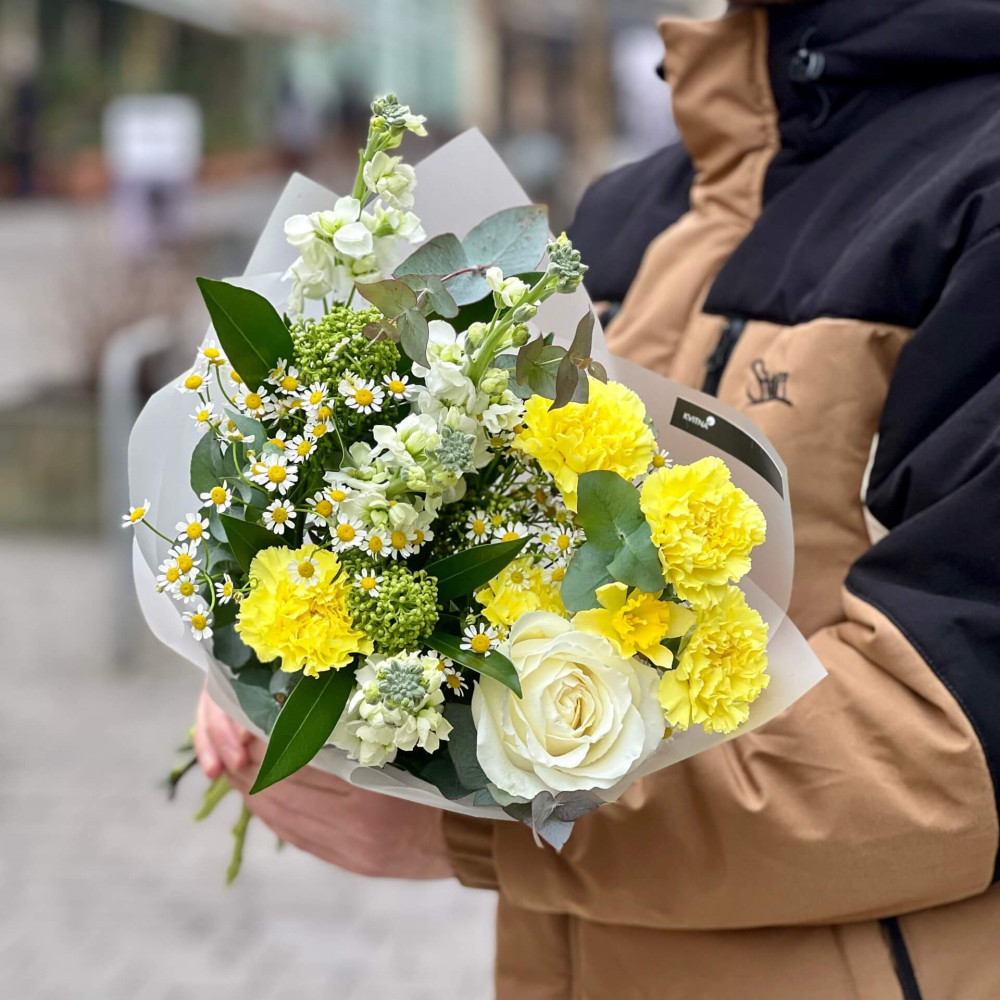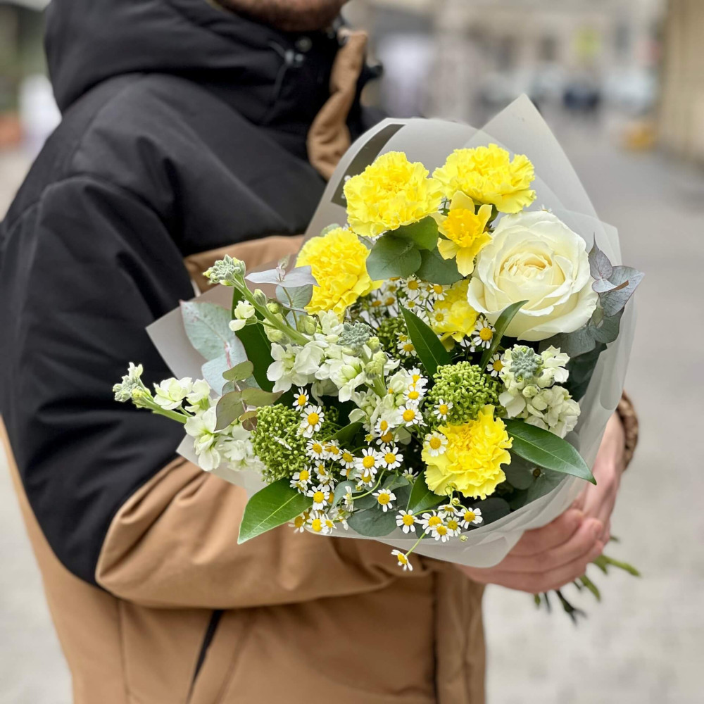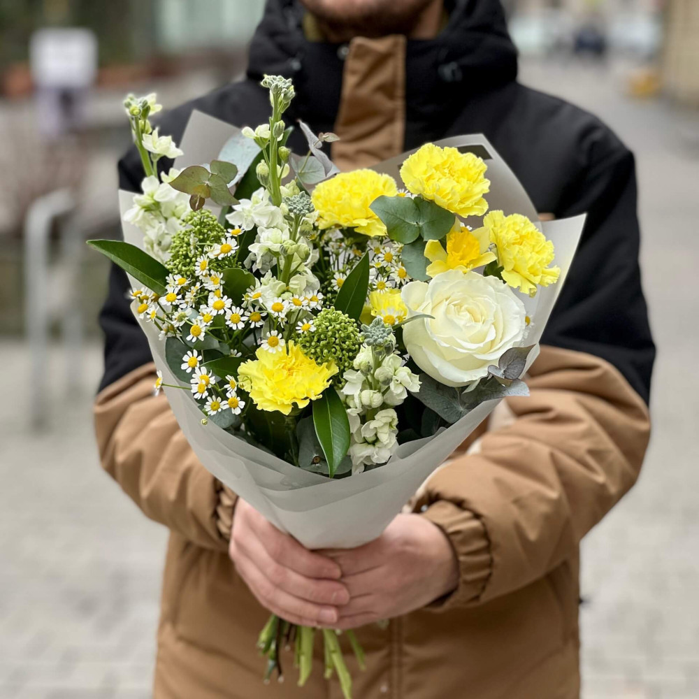 - Як замовити Яскравий букет з діантусами та матіолою «Лимонна мить»? ❯