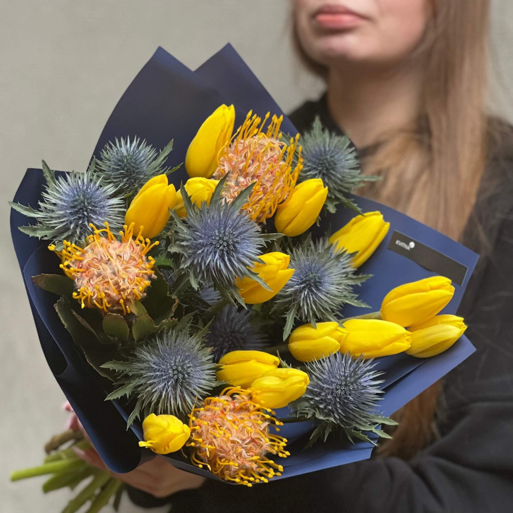 Квіти: Ерінгіум, Тюльпан, Леукоспермум