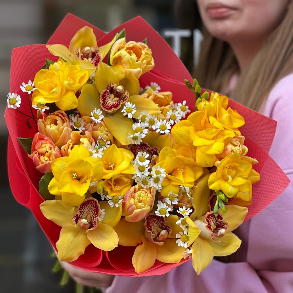 Квіти: Тюльпан, Цимбідіум, Фрезія, Танацетум