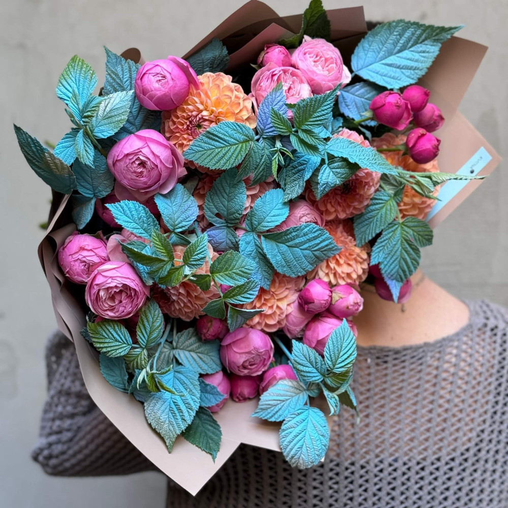 - Як замовити Яскравий букет з кущовою піоновидною трояндою Silva Pink «Осінній морозець»? ❯