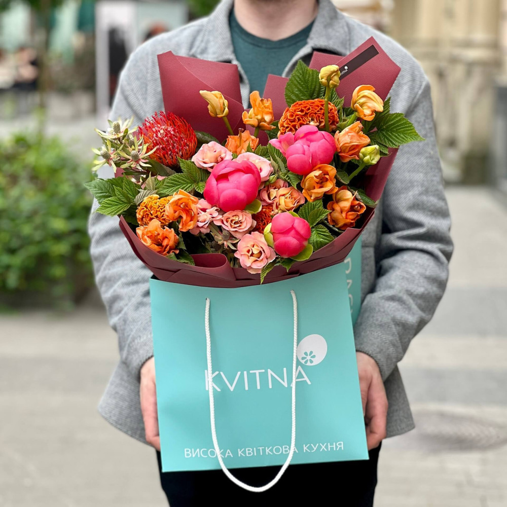 І це, до речі, зовсім не обов'язково плюси, це особливості, які потрібно розуміти. Тоді і вибір «де купити букет у Львові» зробити буде значно простіше.- Кожен букет Kvitna унікальний. Це означає, якщо Ви замовите у нас якийсь із букетів на сайті, то Ви не отримаєте точнісінько такий же. Деяких це бентежить, такі люди не хочуть «ризикувати», бажають «в точності, як на світлині». У «Квітна» кожен букет — це творчий пошук, це захоплення, злиття з квітами, образом одержувача і завданням. Так, ми можемо прийняти за вектор, зробити схожий букет, в тому ж стилі, кольоровій гамі, з тих самих квітів ... Але нам нудно робити за шаблоном. Адже букет, представлений на зображенні, робився для іншої людини, з іншого приводу, під інший настрій і натхнення. У Вас буде все по-іншому.