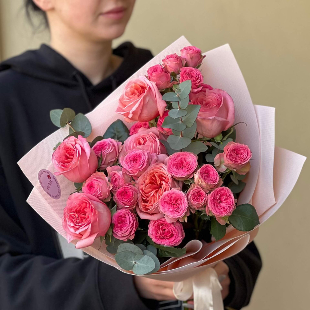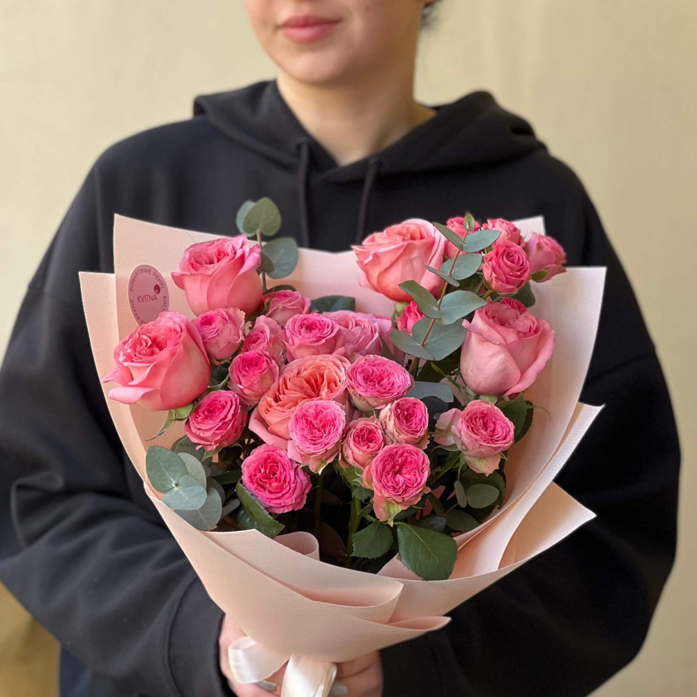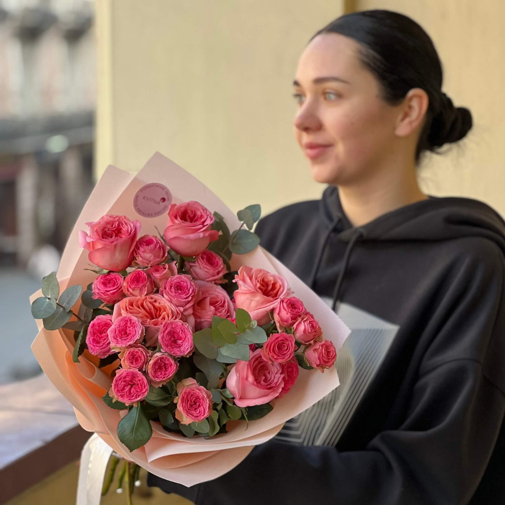 - Як замовити Яскравий букет з піоновидними трояндами «Замріяна пригода»? ❯