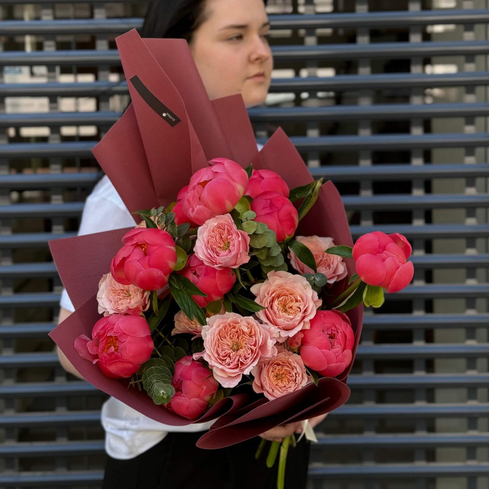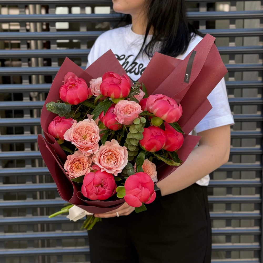 - Як замовити Яскравий букет з півоніями та піоновидними трояндами «Півонієва сила»? ❯