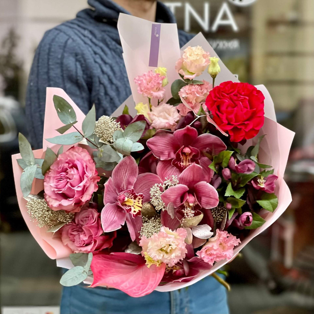 Квіти: Хелеборус, Антуріум, Цимбідіум, Троянда піоновидна, Еустома, Евкаліпт