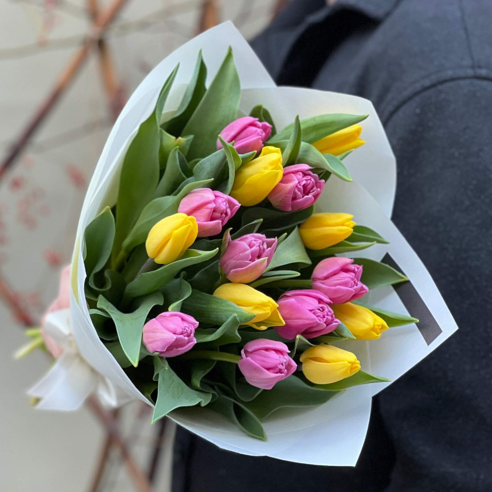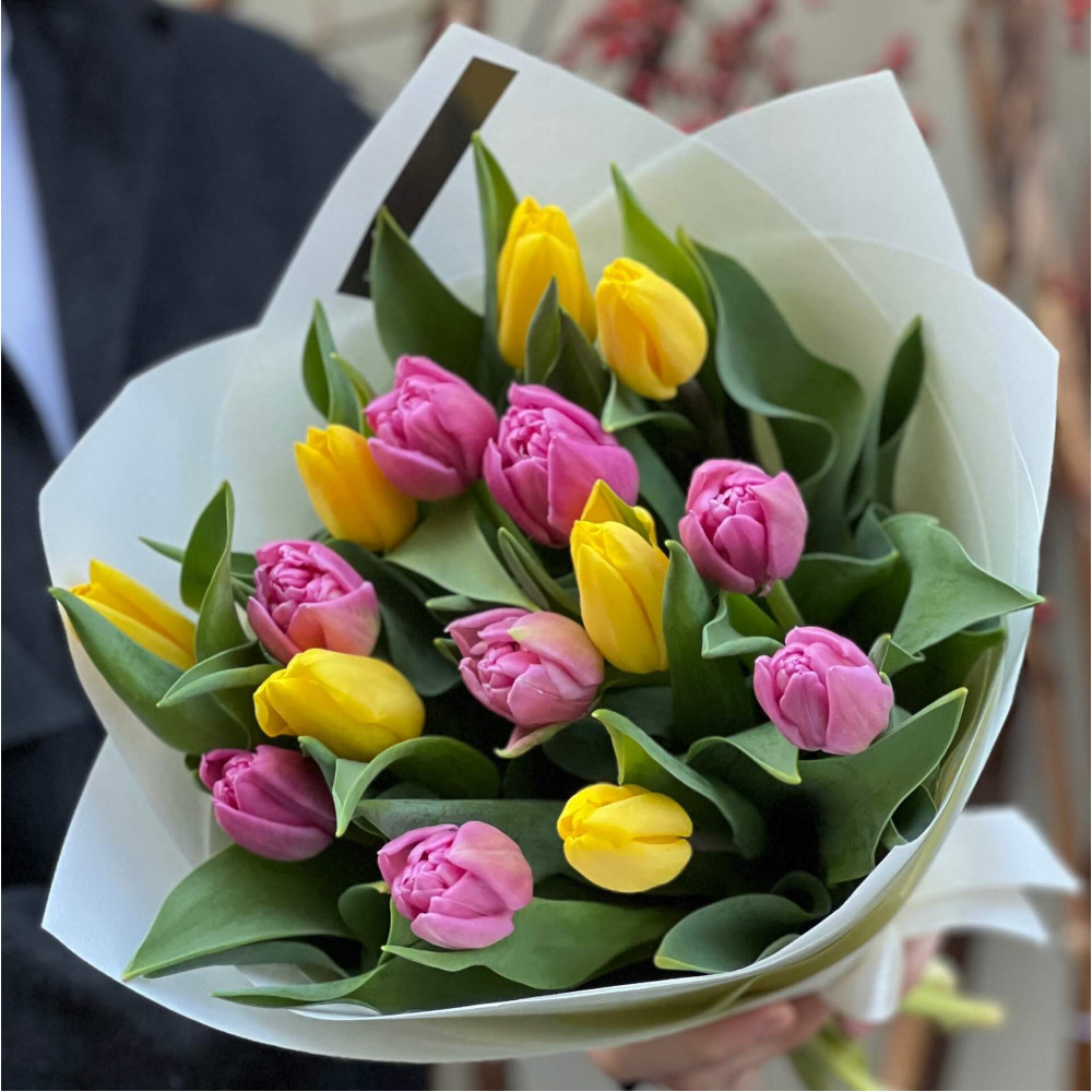 - Як замовити Яскравий мікс із 15 тюльпанів «Радісні краплинки»? ❯