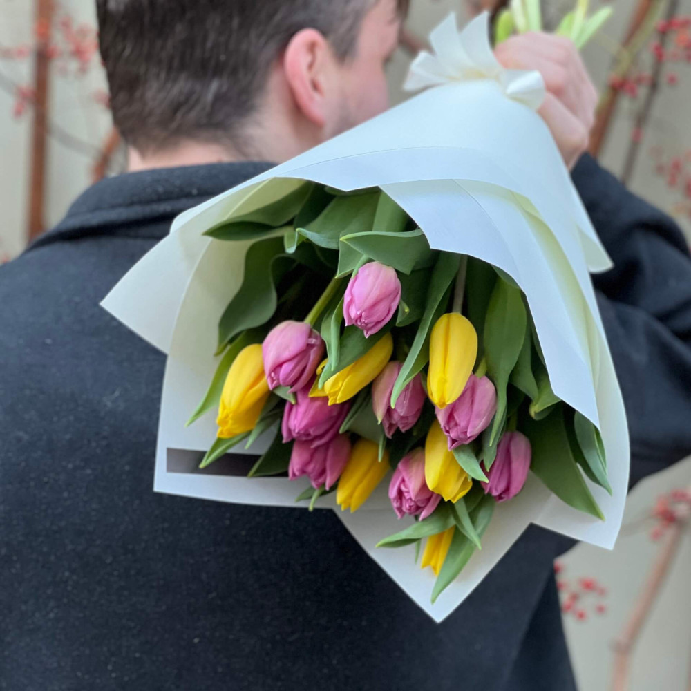 - Ми радимо знімати упаковку з букета і ставити букет в вазу в тій спіральній техніці, яку зробив флорист, тоді букет буде тримати гарну форму і тюльпан дасть свій природній вигин і красиве розкриття.