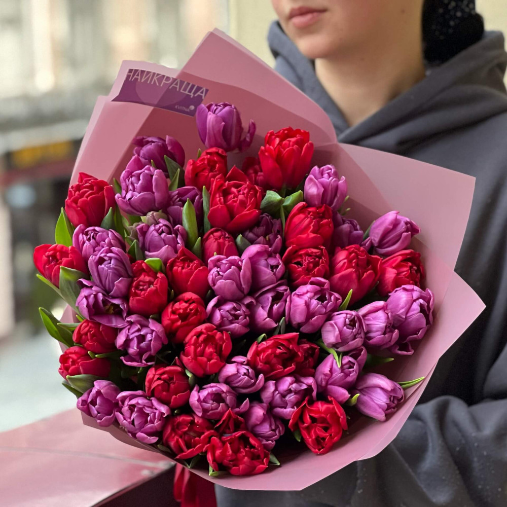 - Як замовити Яскравий мікс із піоновидних тюльпанів «Пристрасне побачення»? ❯