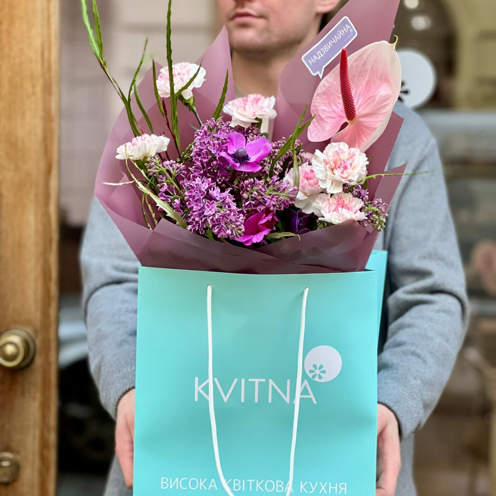 - Як замовити Запашний букет з бузком, анемоном та антуріумом «Весняний акцент»? ❯