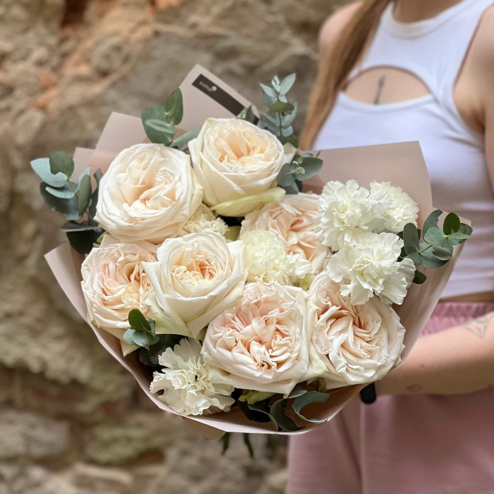 - Як замовити Запашний букет з піоновидними трояндами White O'Hara «Ароматна квіточка»? ❯