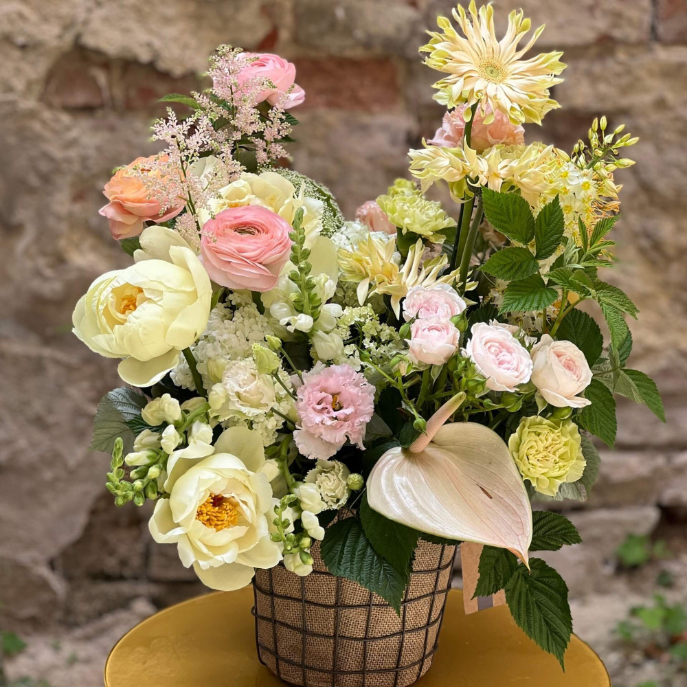 Квіти: Діантус (Гвоздика), Півонія, Вібурнум, Еустома, Гербера, Астільба, Антуріум, Антиррінум, Троянда піоновидна кущова, Еремурус
