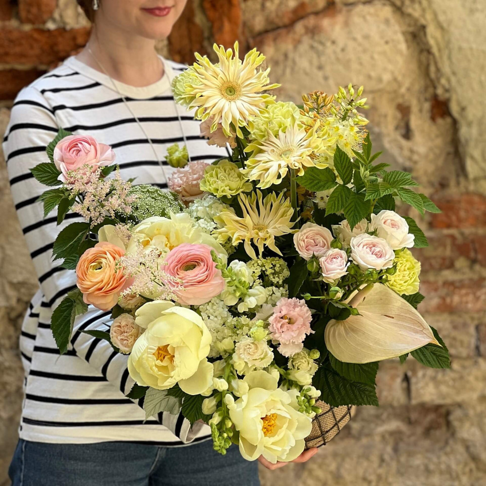 Залежно від сезонності і наявності квітів ми залишаємо за собою право змінювати склад букета без повідомлення замовника, зберігаючи при цьому авторський стиль, колірне рішення, концепцію букета. У разі, якщо необхідна заміна базової квітки, заміна відбувається з узгодженням із замовником. Якщо для Вас критично важлива присутність в складі певної квіточки – обов'язково зв'яжіться з нами та повідомте про це.
