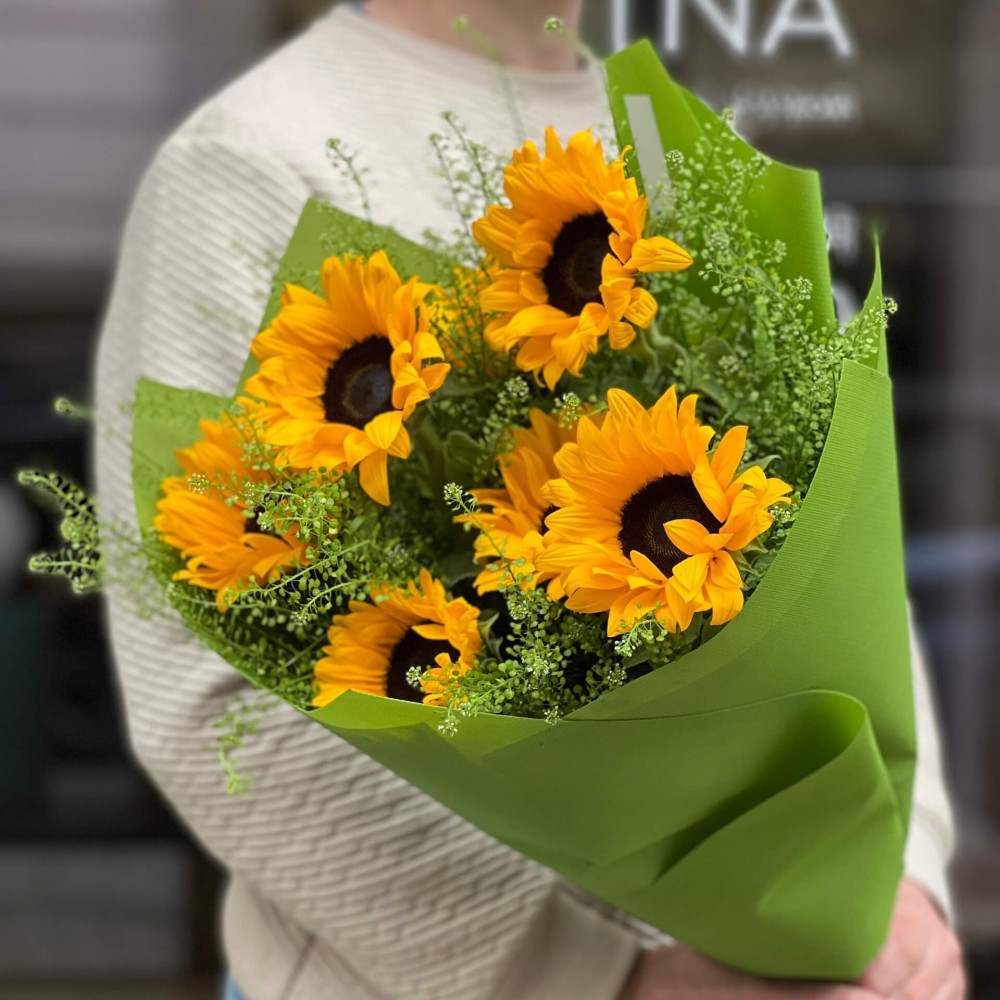 Повітряний легкий дует з соняхів та зелені тласпі. Немов павутинка, в якій блищать сонячні промені.