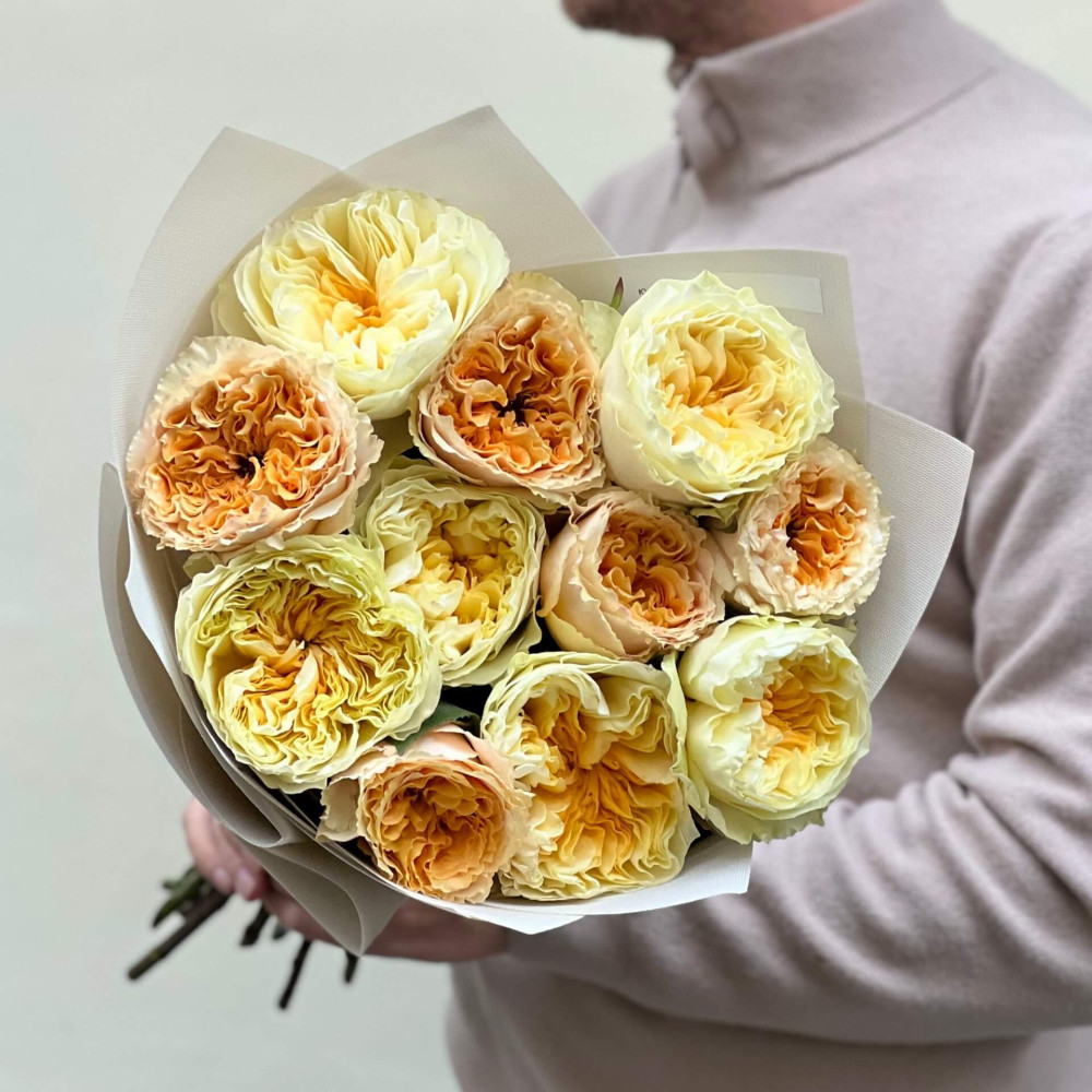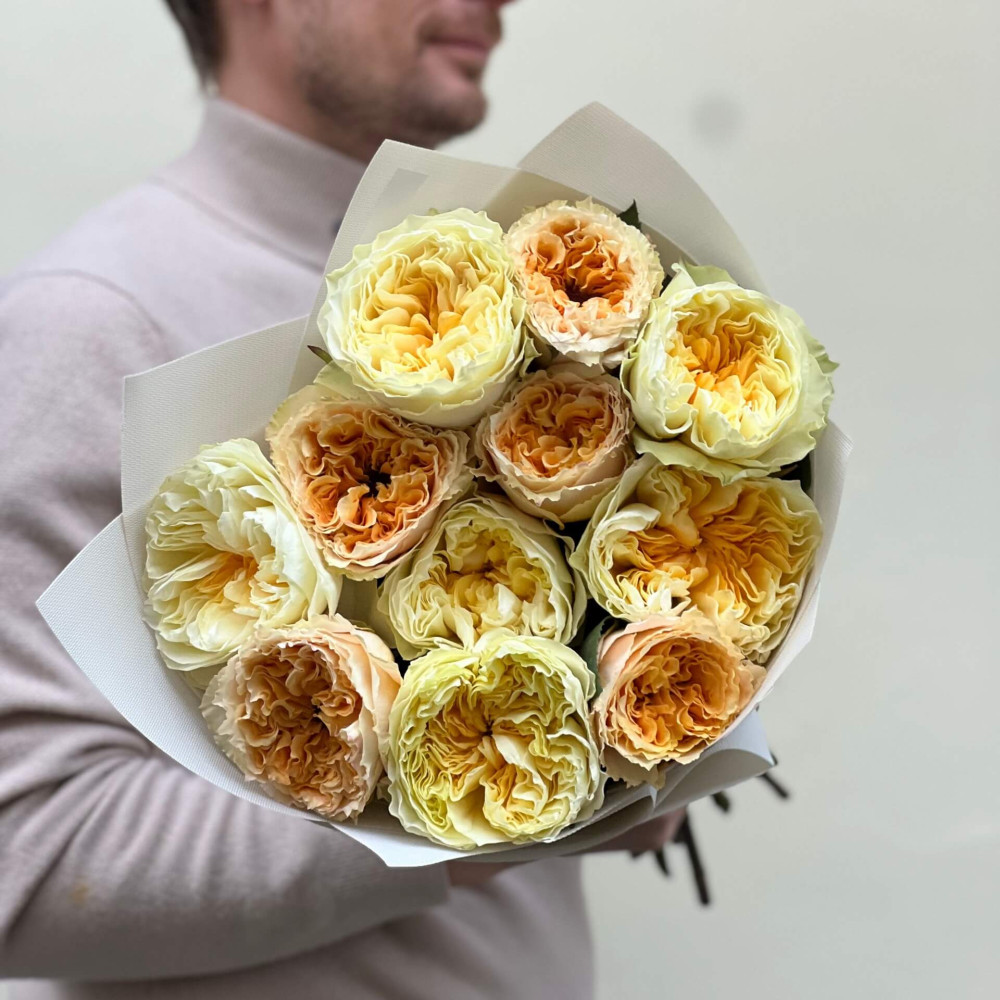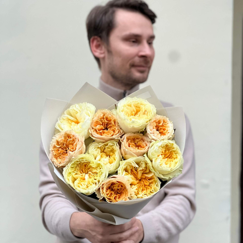 - Як замовити Життєрадісний теплий букет з півонієподібних троянд «Аромат цитрона»? ❯
