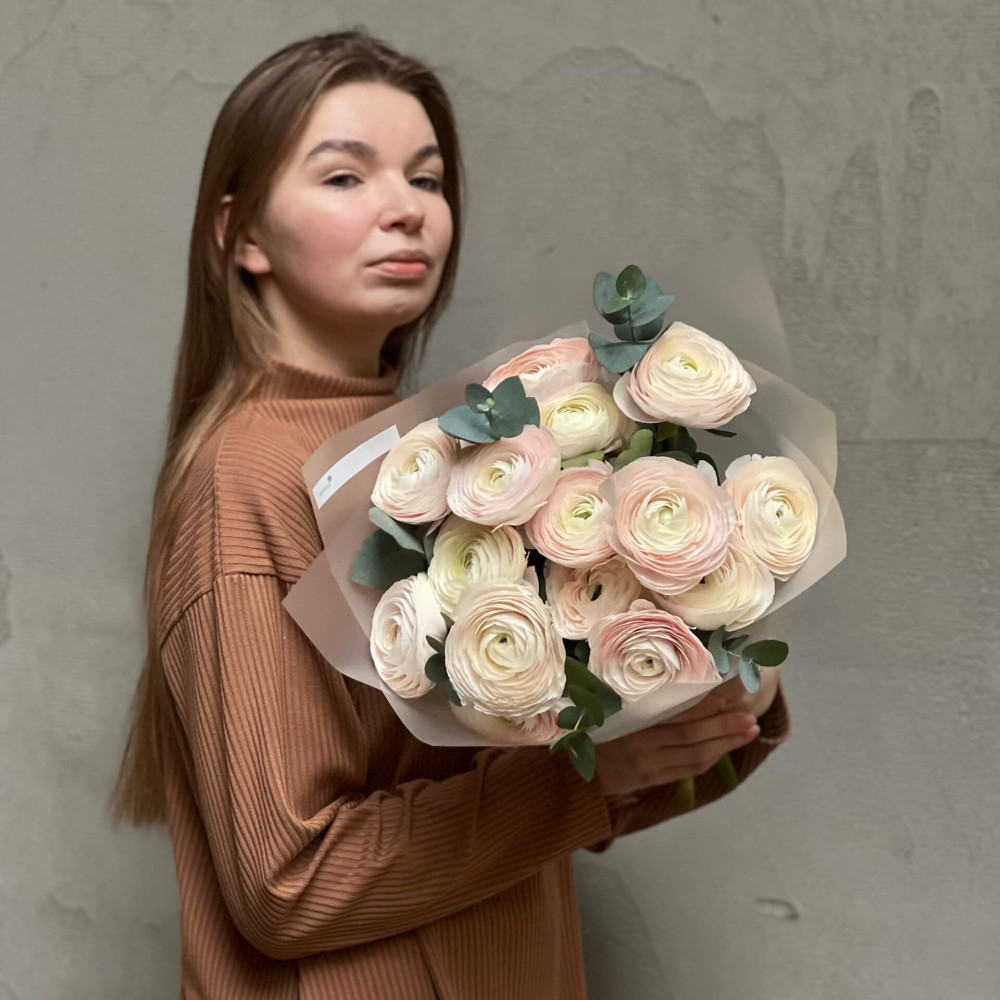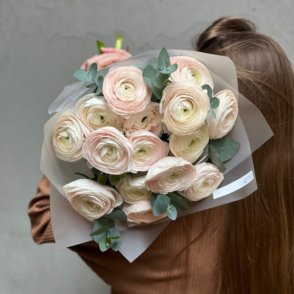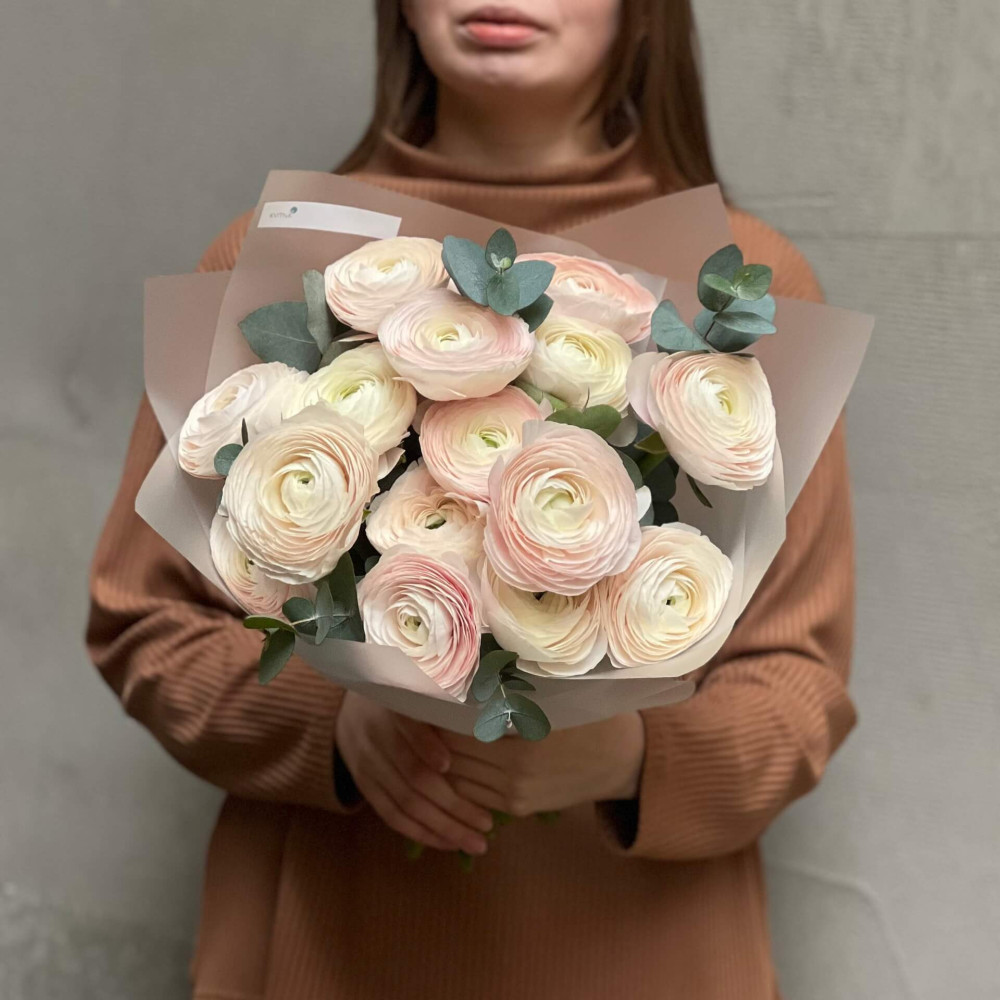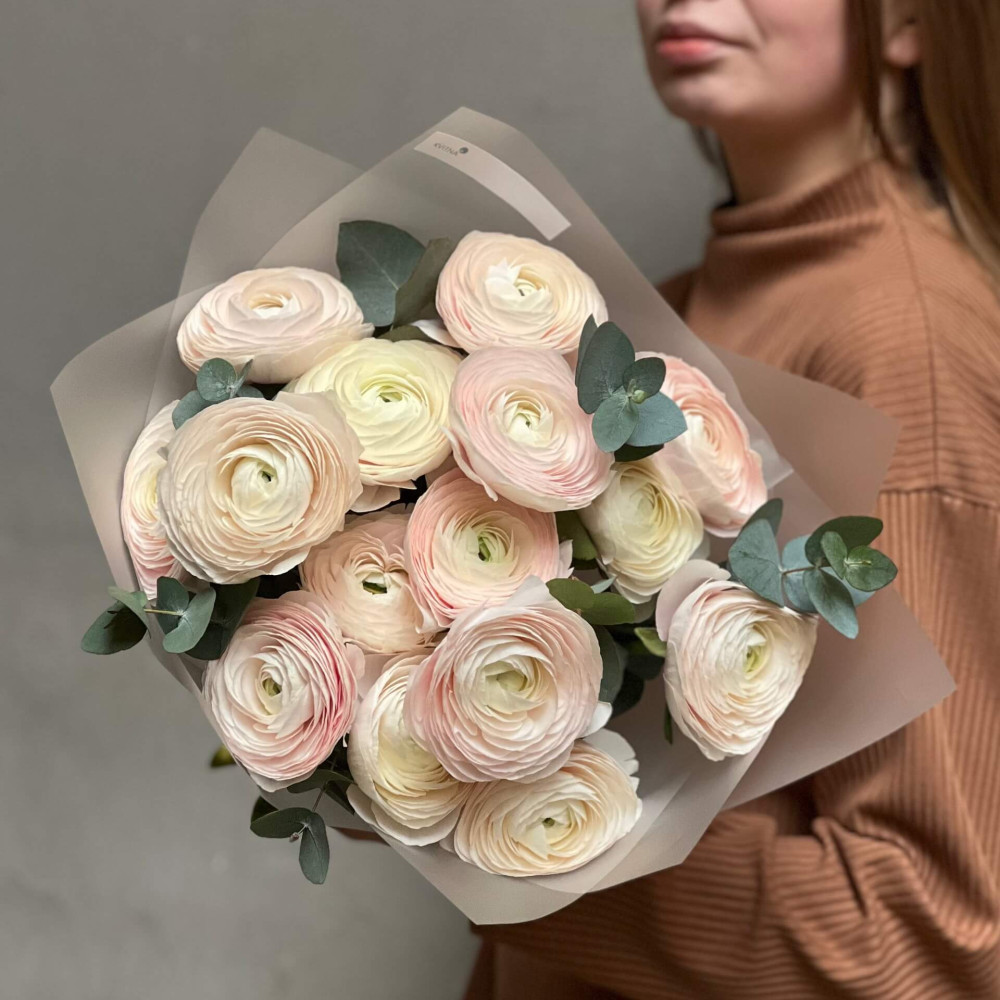 - Как заказать 15 нежных ранункулюсов Clooney Hanoi в букете «Сияющие жемчужины»? ❯