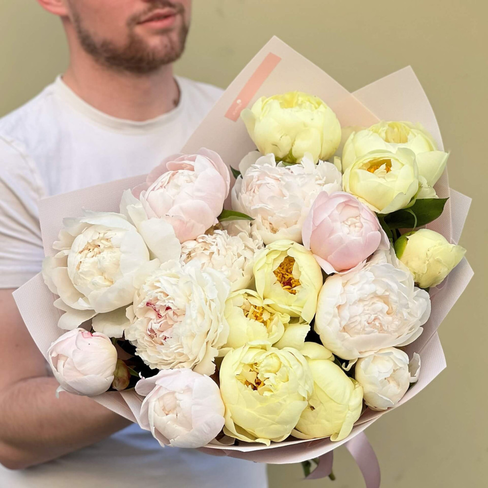 Пионы уже начинают свой сезон! Рекомендуем так же обратить внимание на пионовидные розы - они очень похожи на пионы, и доступны круглый год.