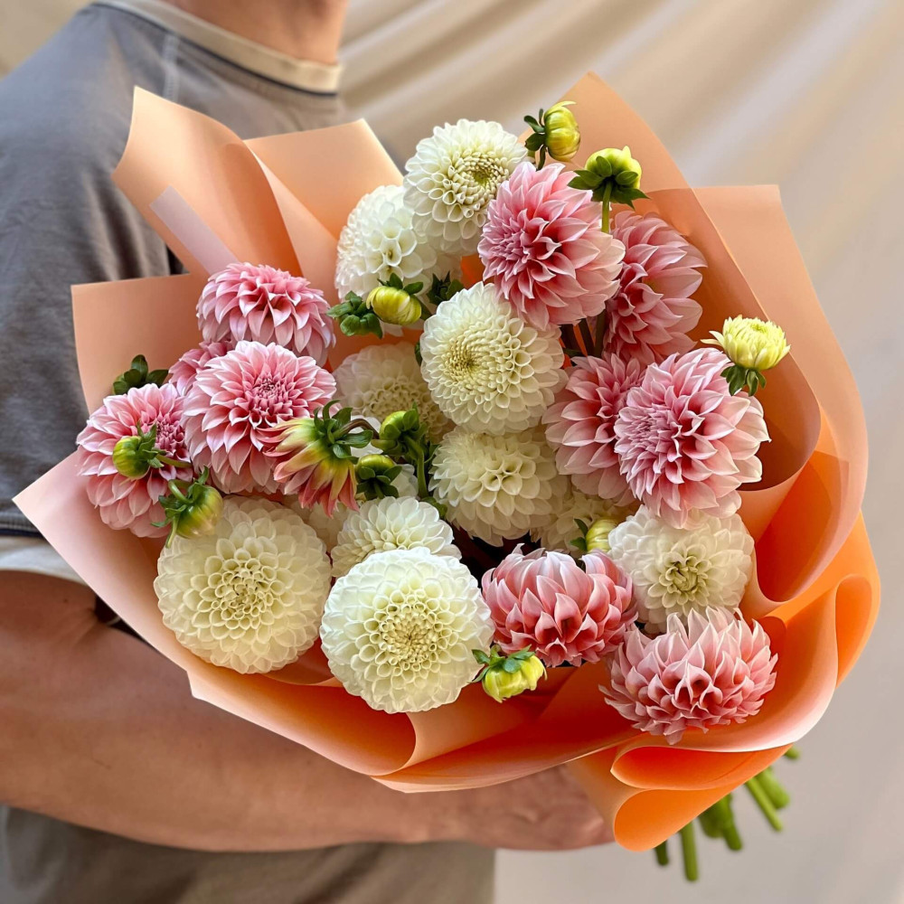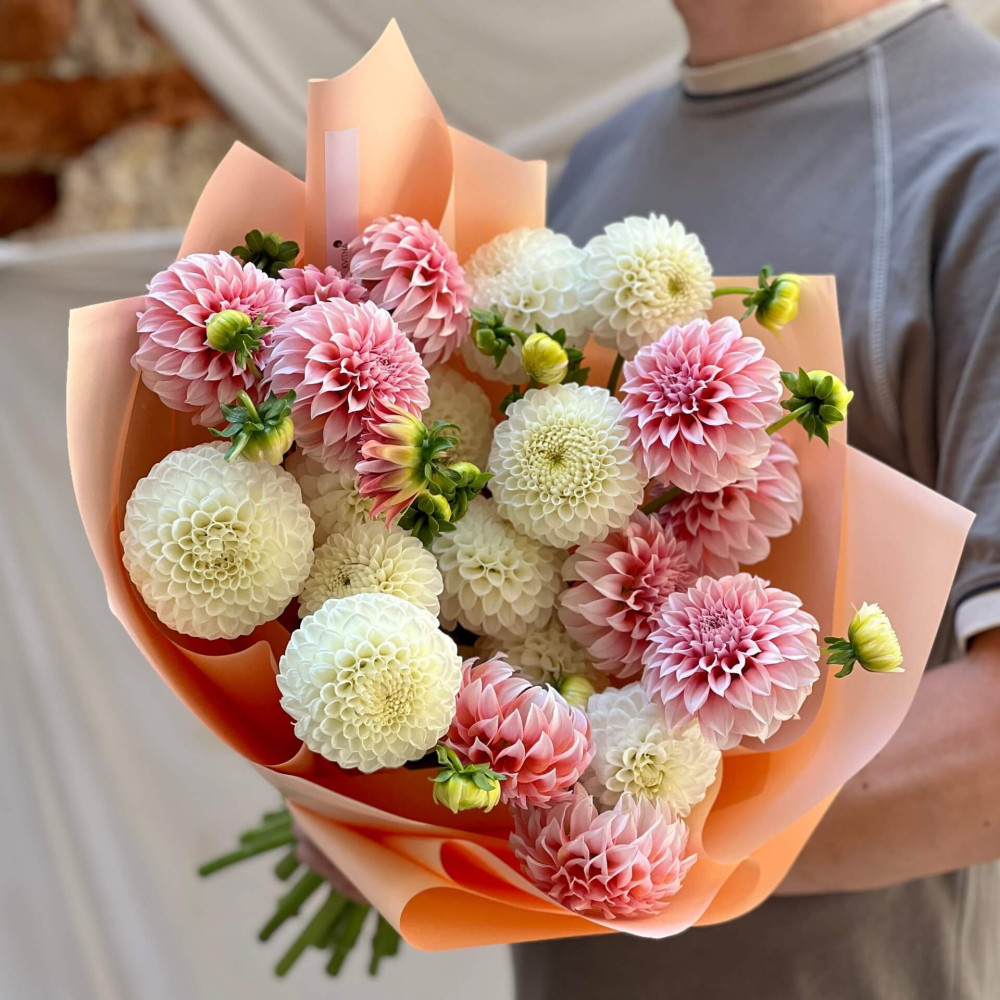 - Как заказать 19 георгин в букете «Мороженое с персиками»? ❯