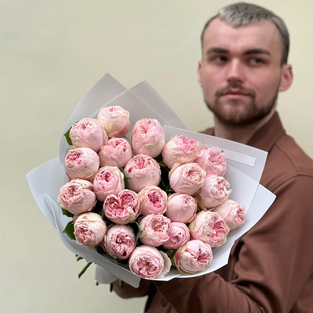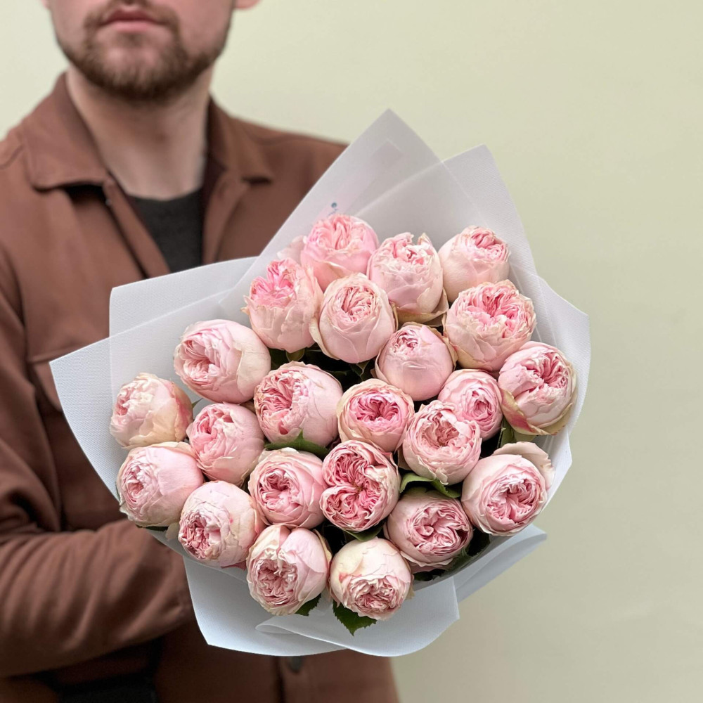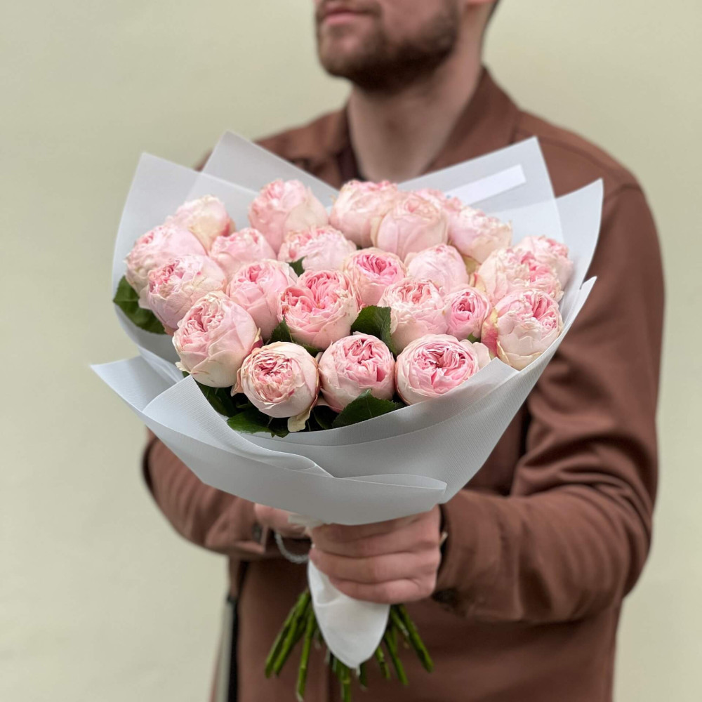- Как заказать 23 роскошные пионовидные розы сорта Mansfield Park у букете «Лепестковая мечта»? ❯