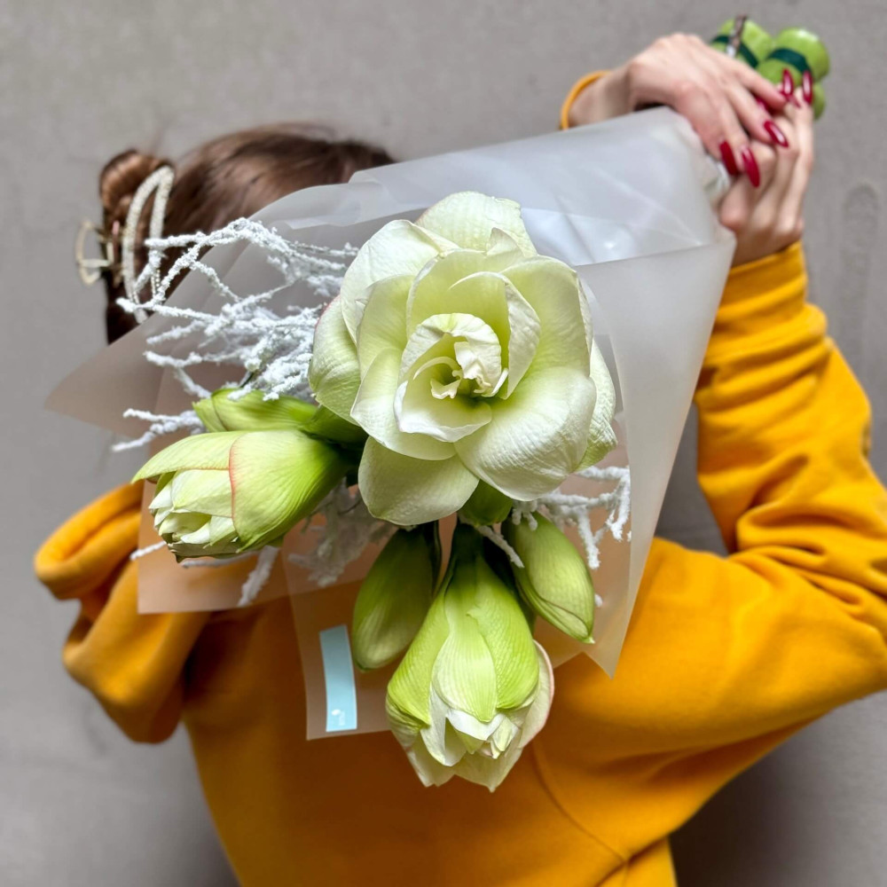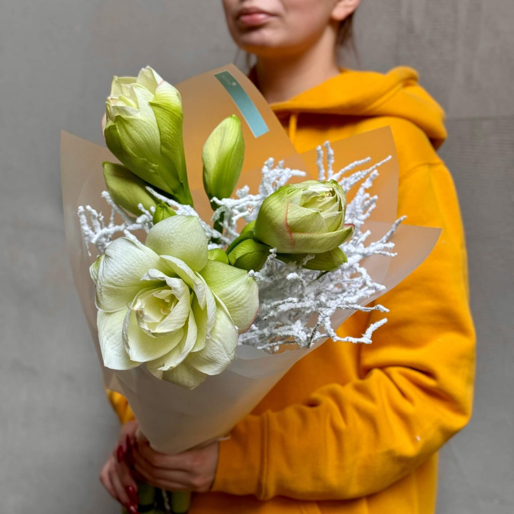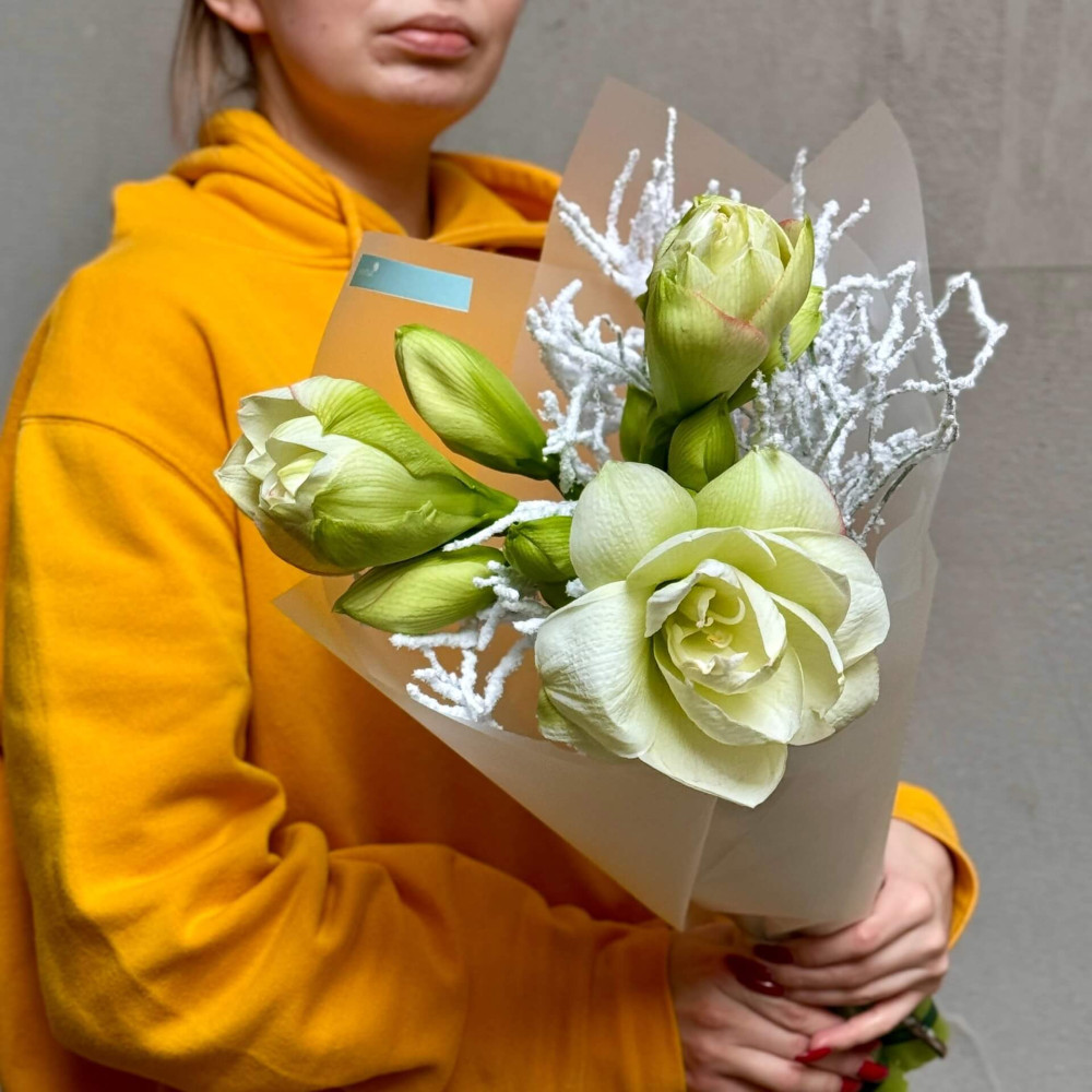 - Как заказать 3 амариллиса в букете «Заснеженный цветочек»? ❯