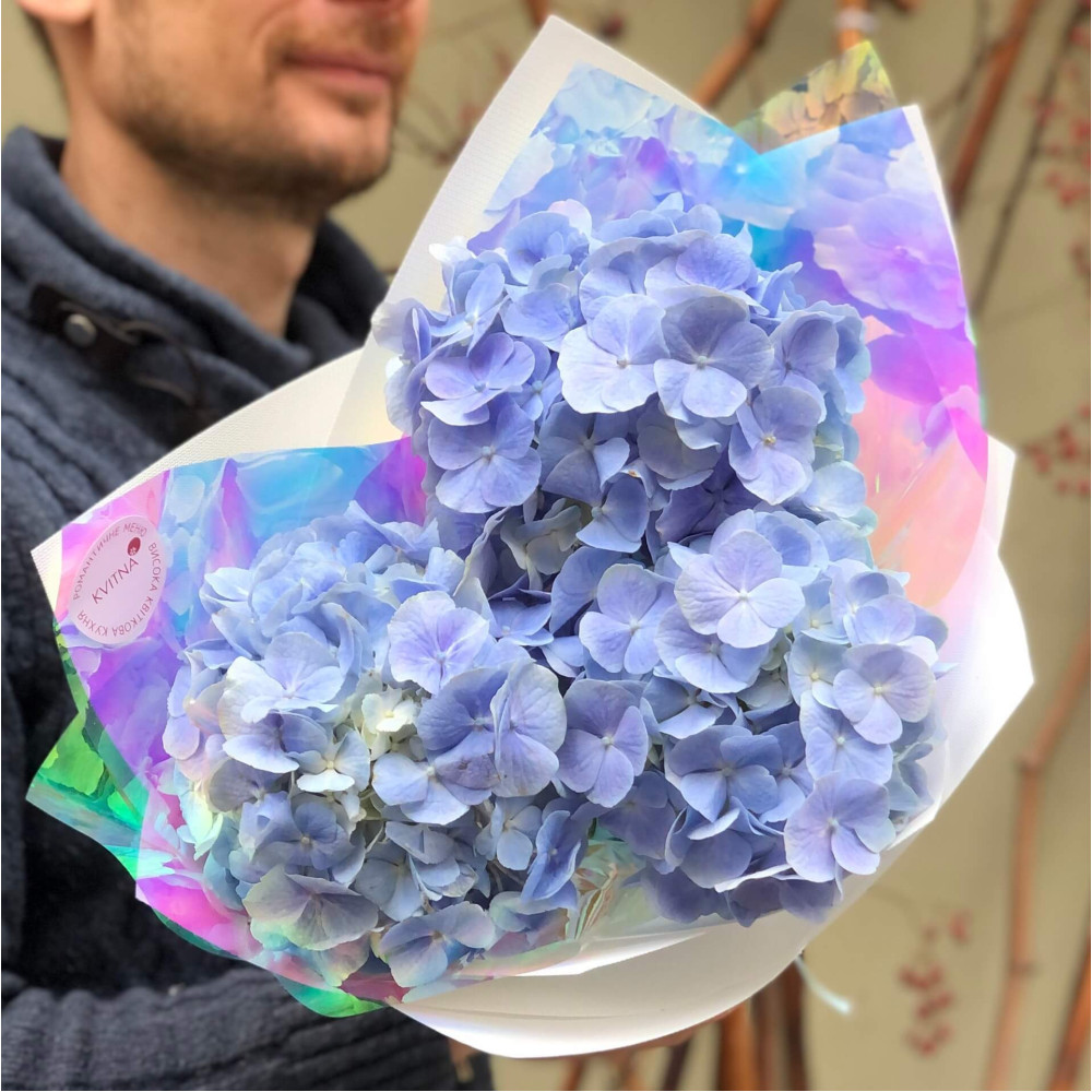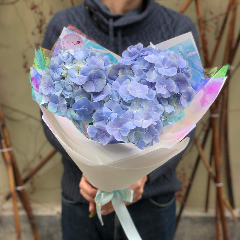 - Как заказать 3 голубые гортензии в букете «Беззаботное небо»? ❯