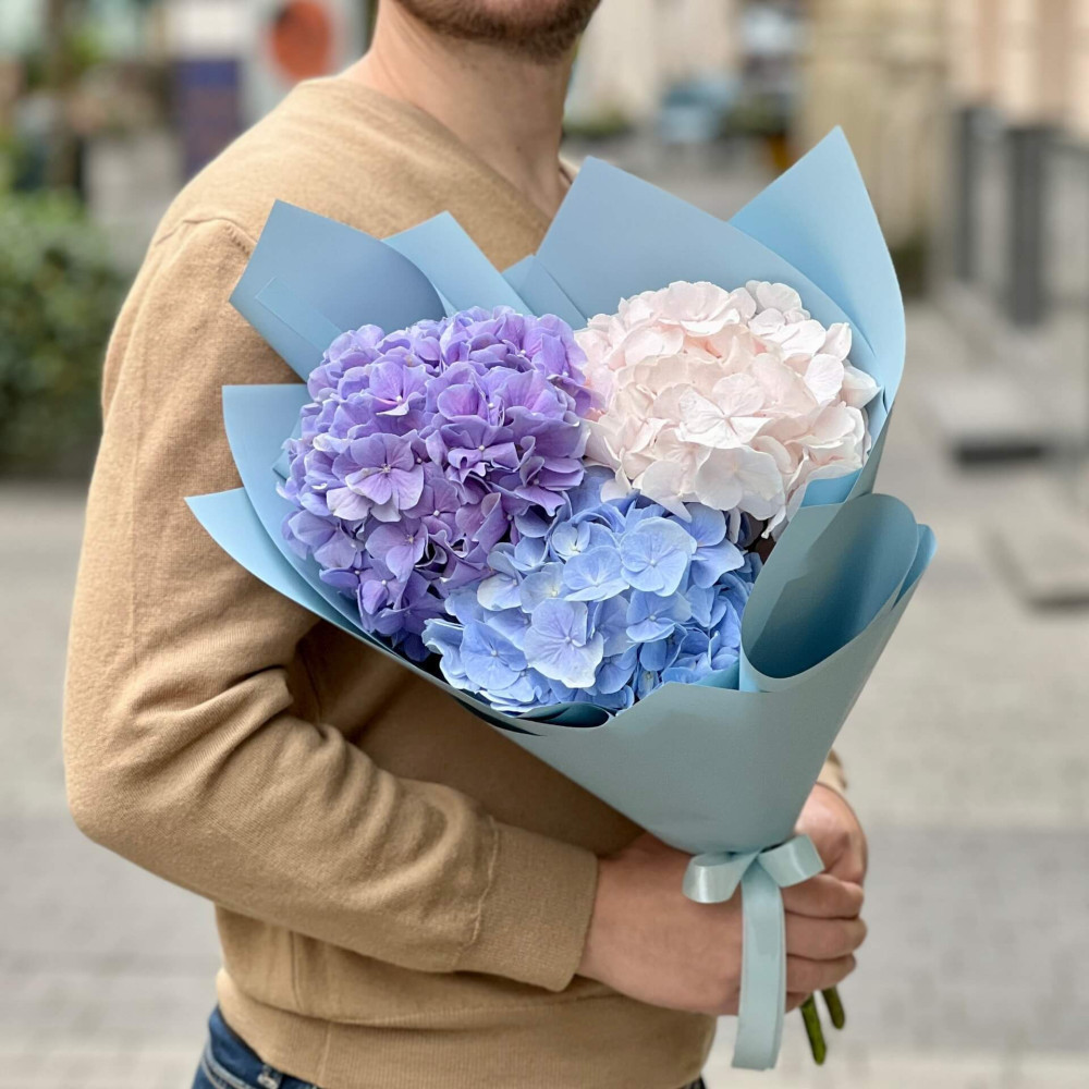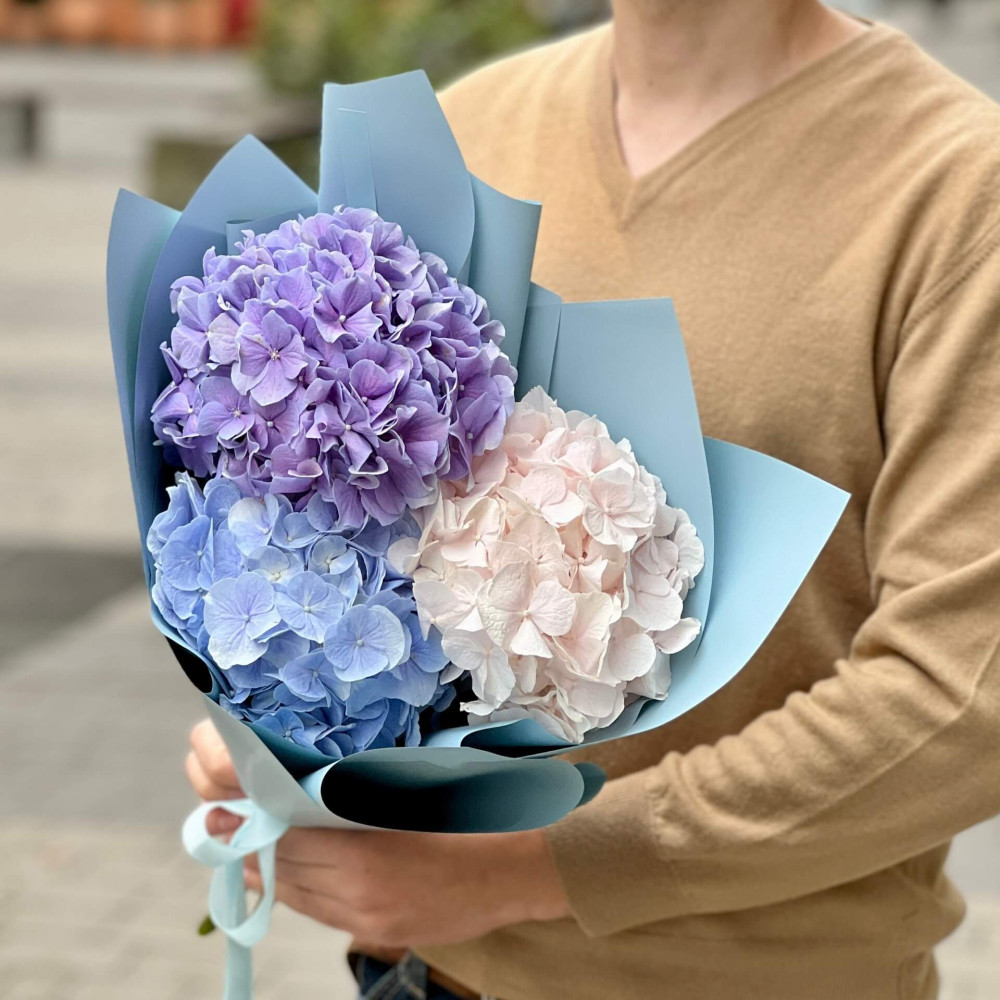 - Как заказать 3 гортензии в букете «Переливы лазури»? ❯