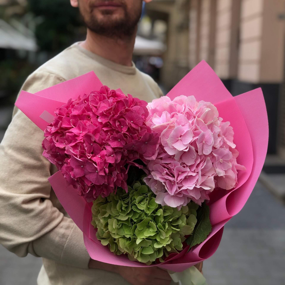 - Как заказать 3 гортензии в букете «Спелый арбуз»? ❯