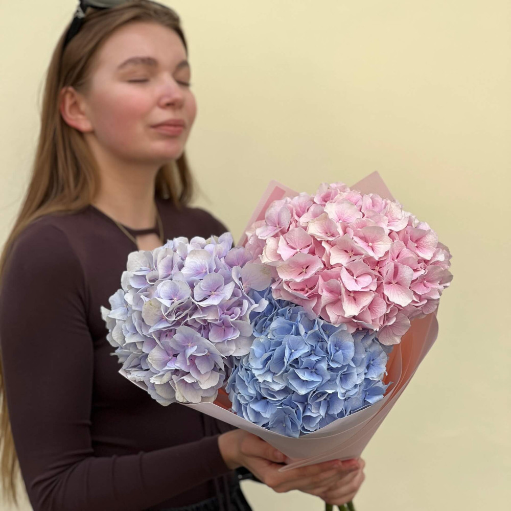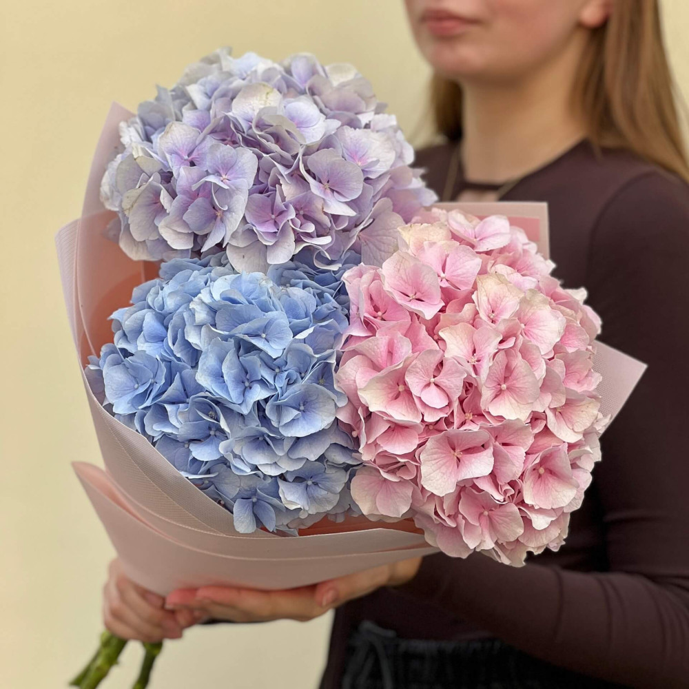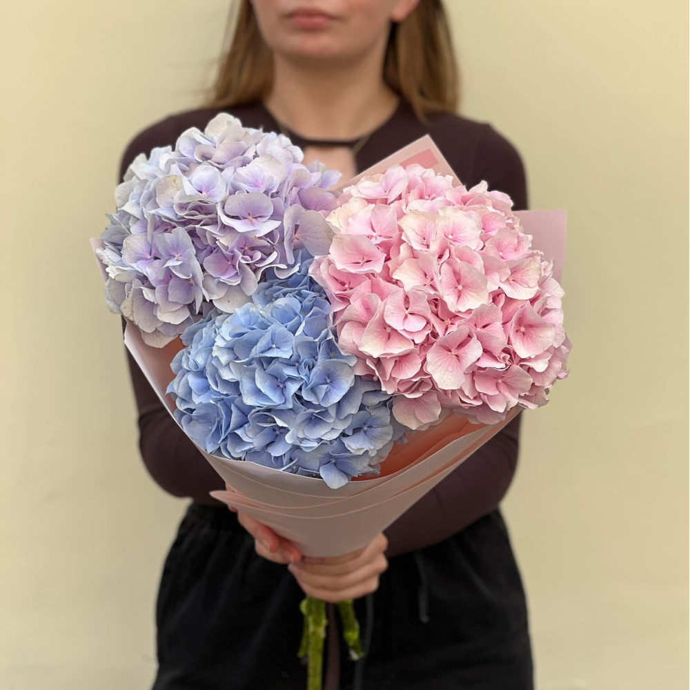 - Как заказать 3 нежные гортензии в букете «Пастельные краски»? ❯