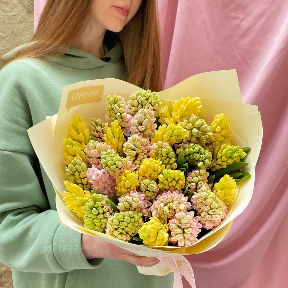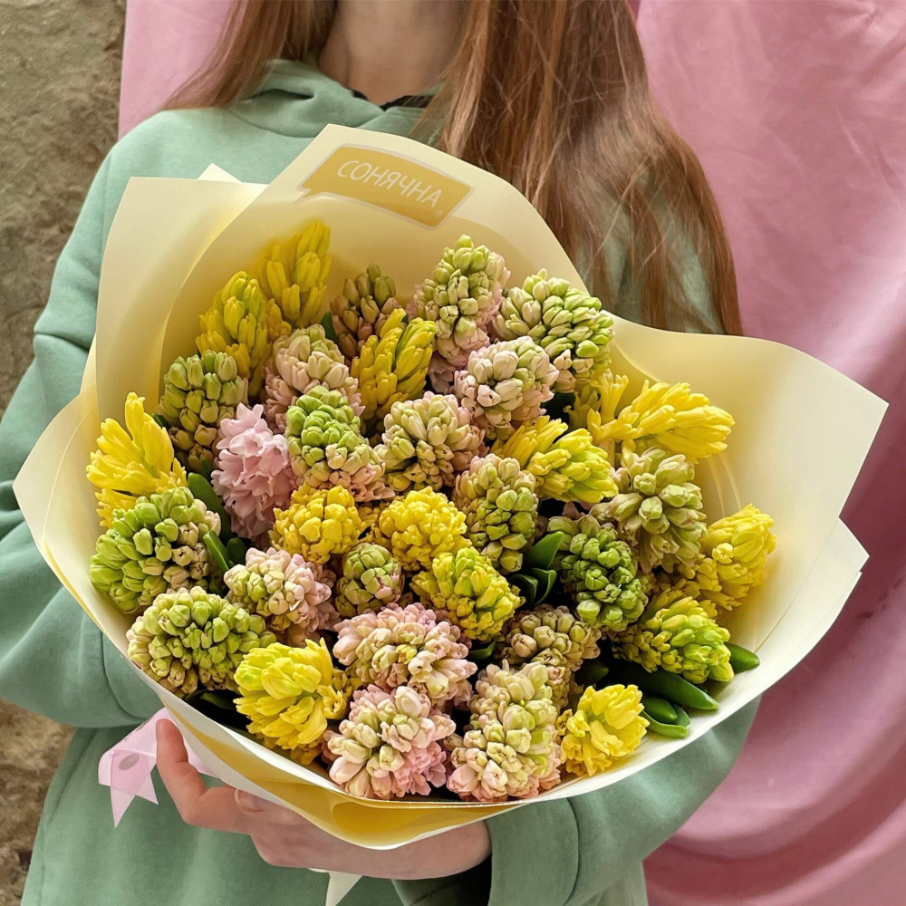 - Как заказать 33 гиацинта в букете «Солнышко»? ❯