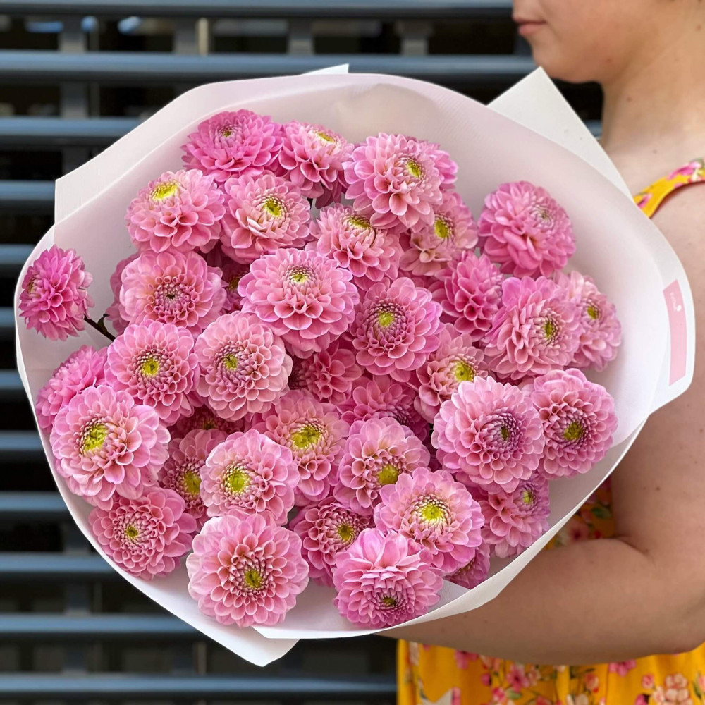 - Как заказать 41 георгина в букете «Розовые шарики»? ❯