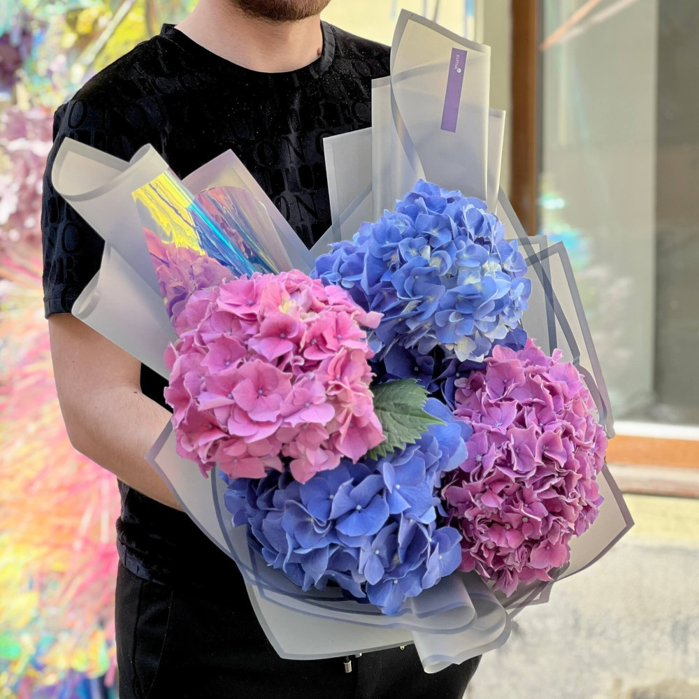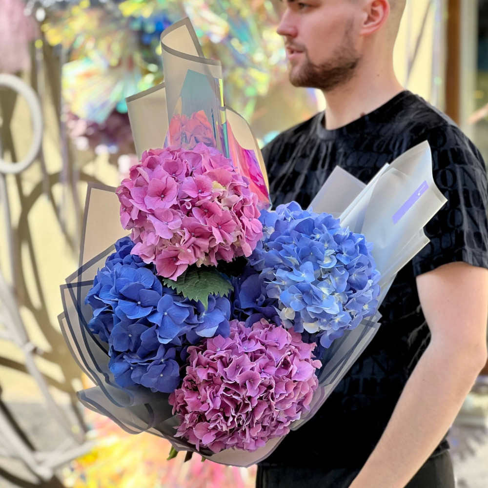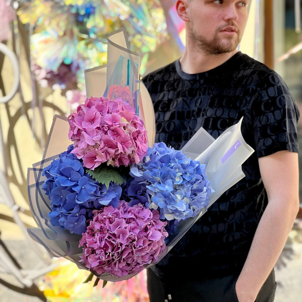 - Как заказать 5 гортензий в букете «Ежевичная долина»? ❯