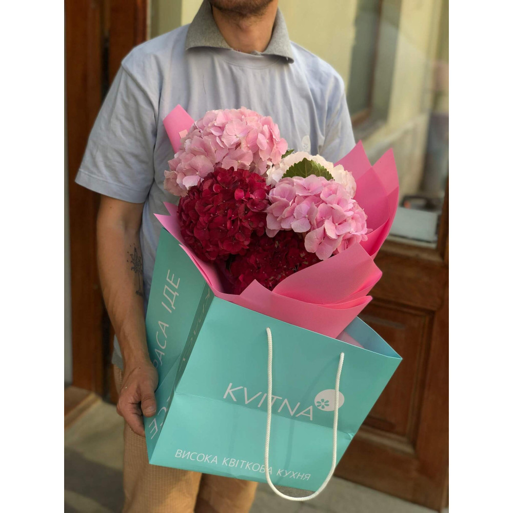 - Как заказать 5 гортензий в букете «Ягодные карамельки»? ❯