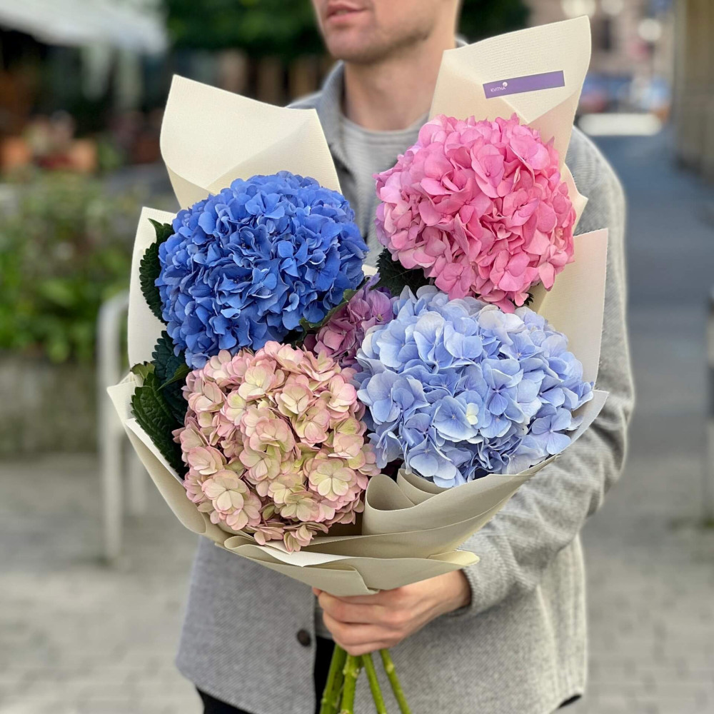 - Как заказать 5 гортензий в букете «Осенний микс»? ❯