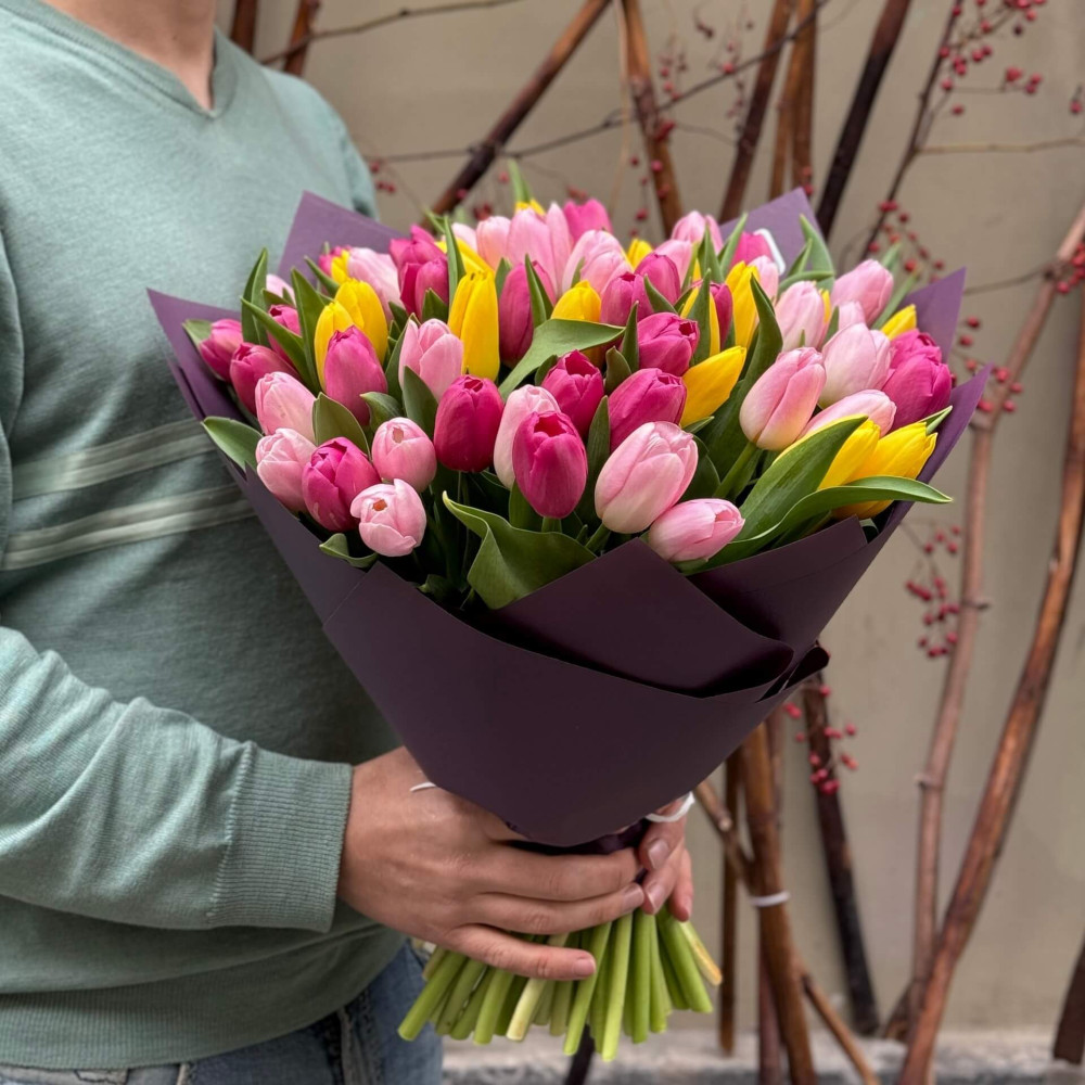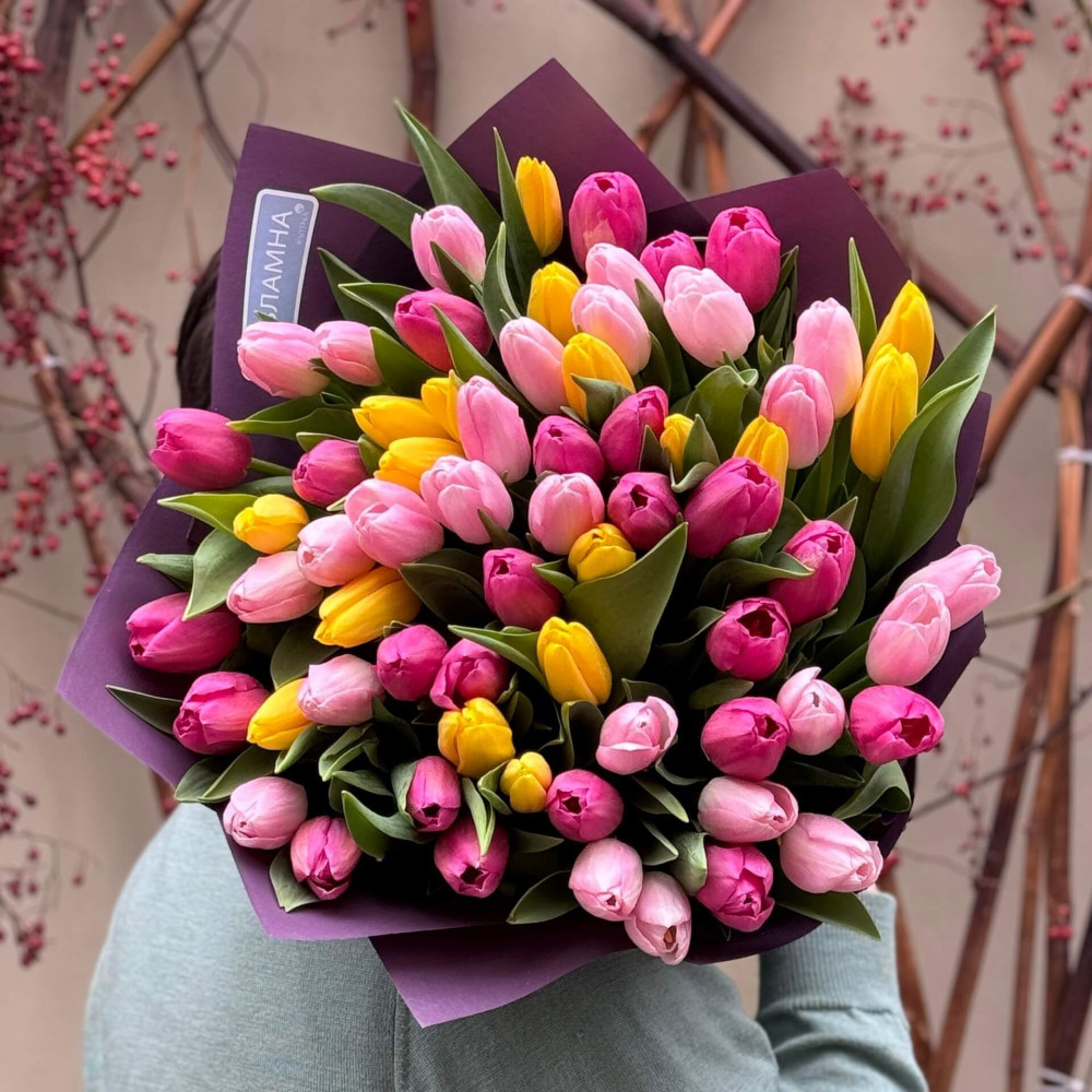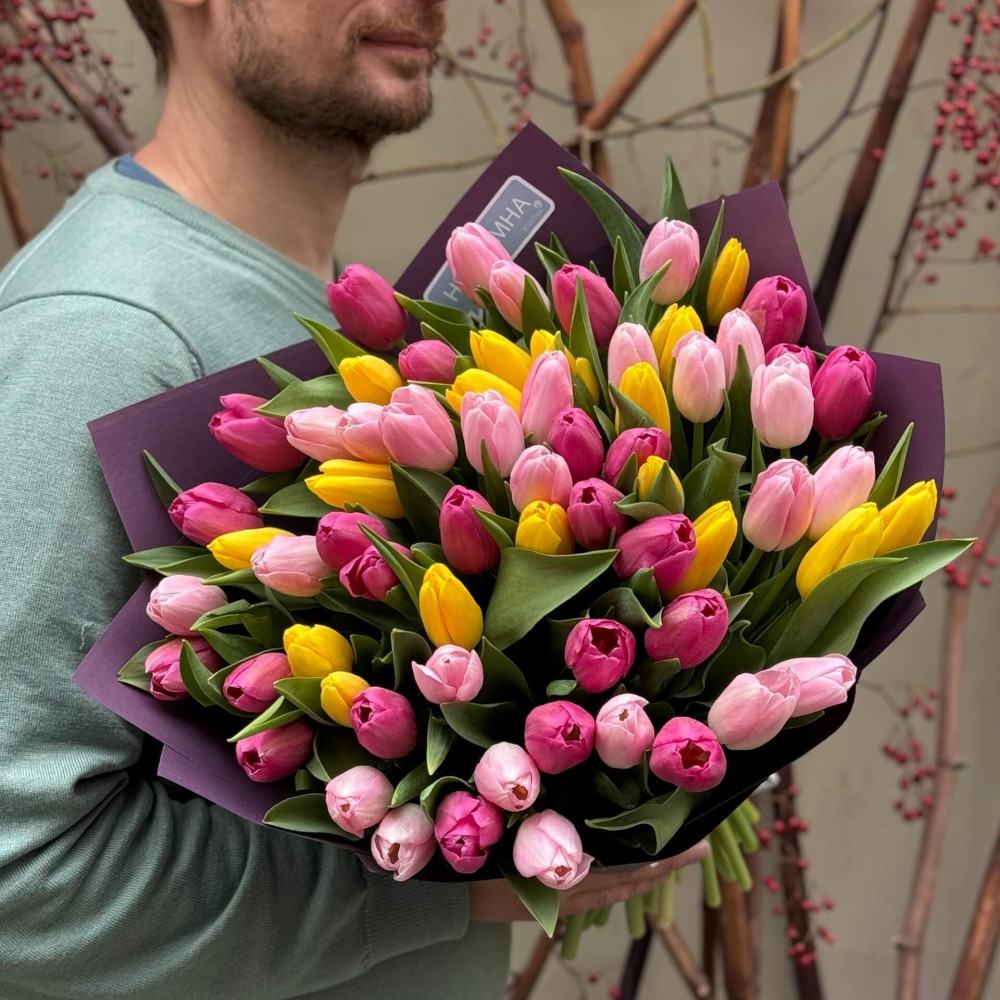 - Как заказать 65 тюльпанов в букете «Тюльпановая роскошь»? ❯