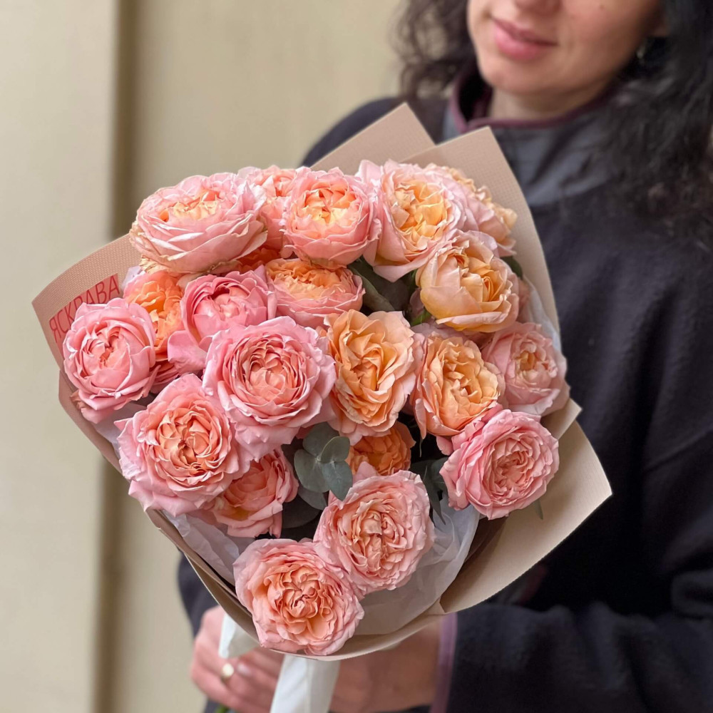 - Как заказать 7 веток кустовой пионовидной розы Juliet в букете «Влюблённая Джульетта»? ❯