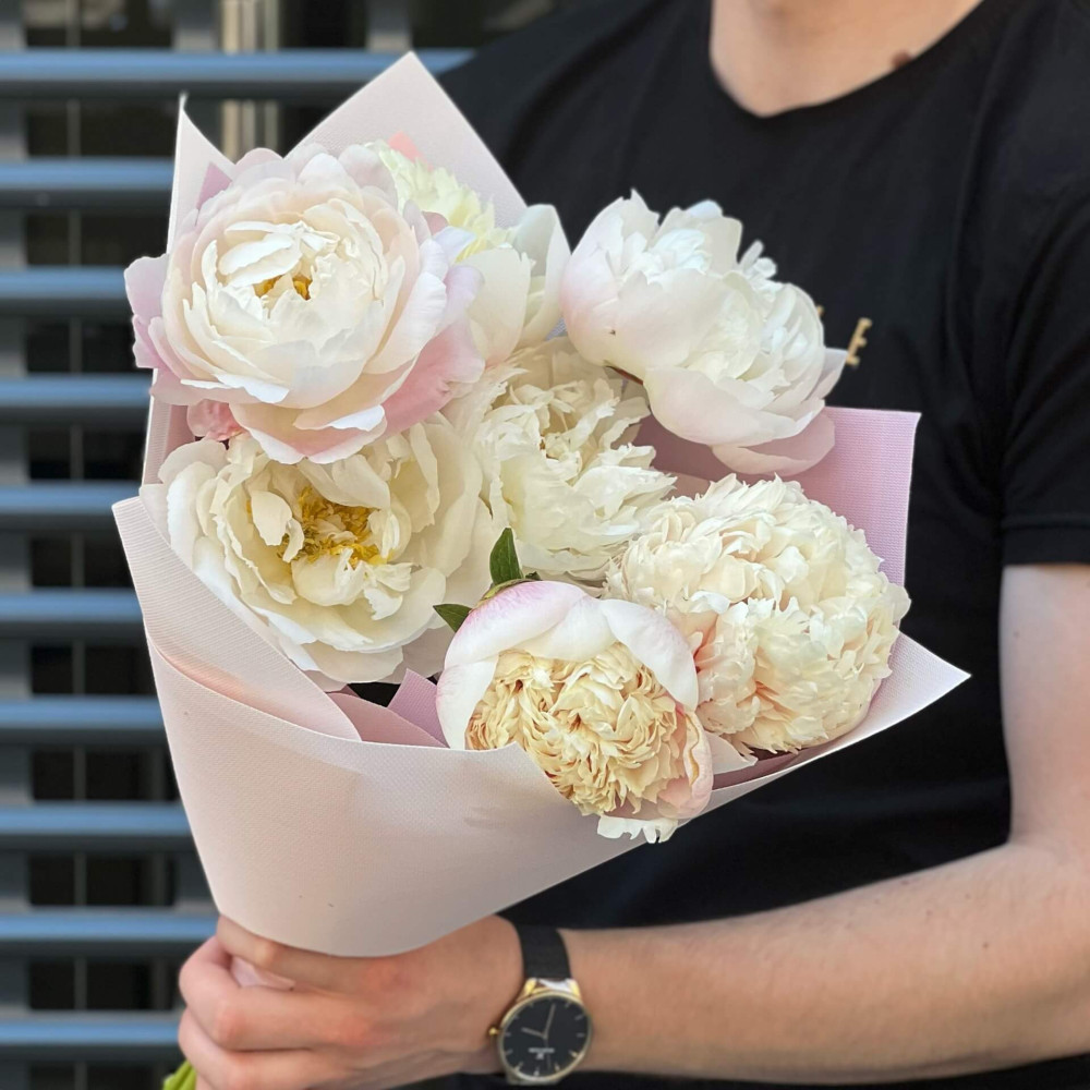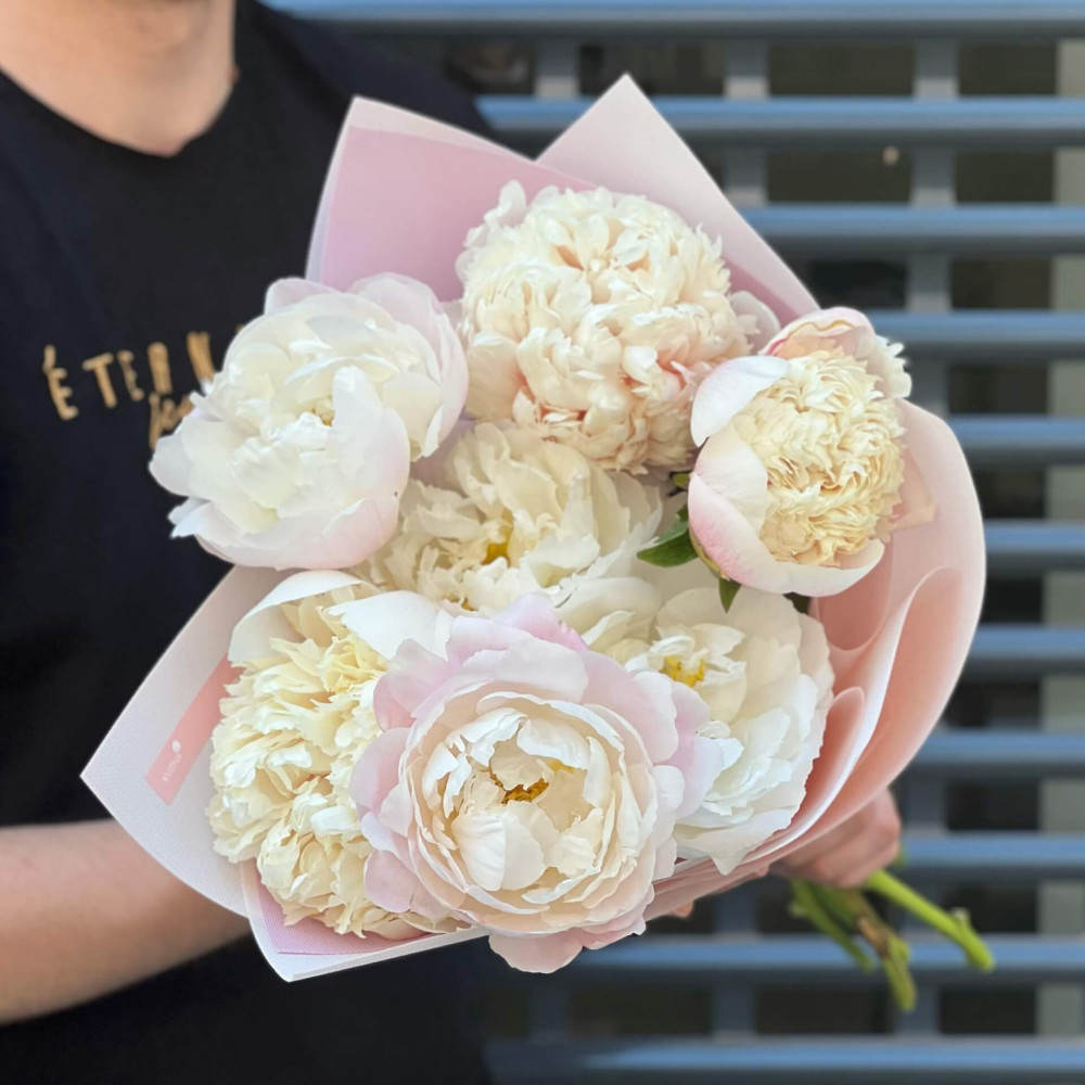 - Как заказать 7 пионов в букете «Мороженко»? ❯