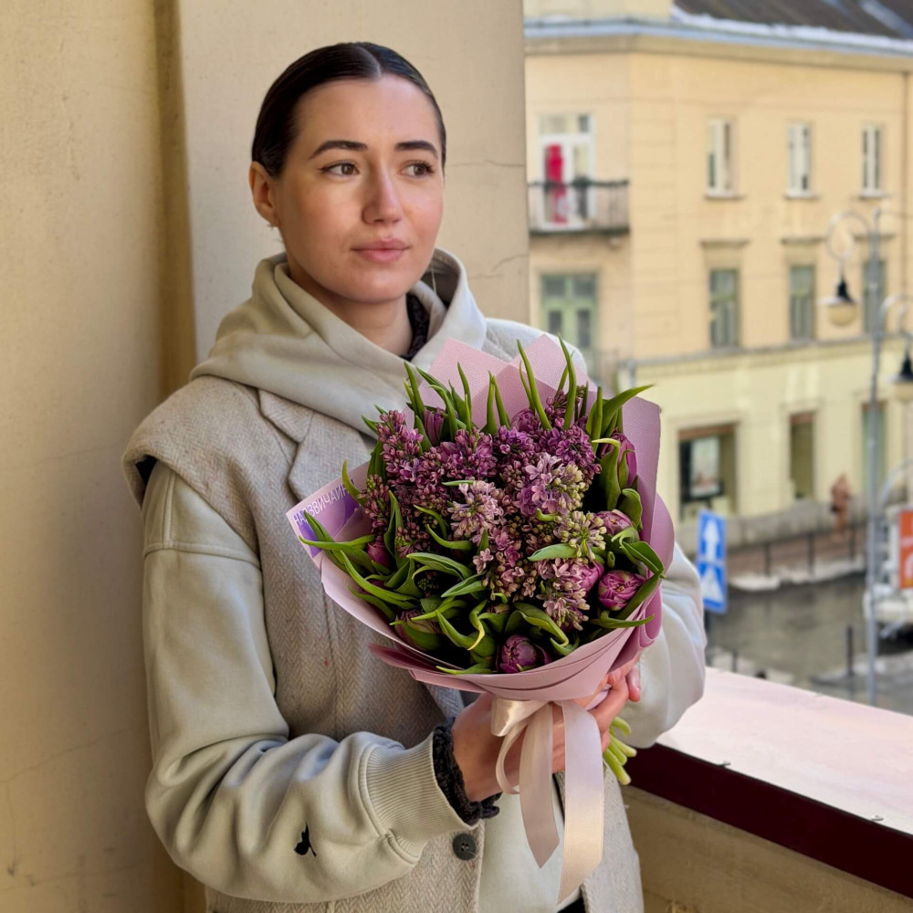- Как заказать Ароматный букет из пионовидных тюльпанов и сирени «Сиреневый дует»? ❯