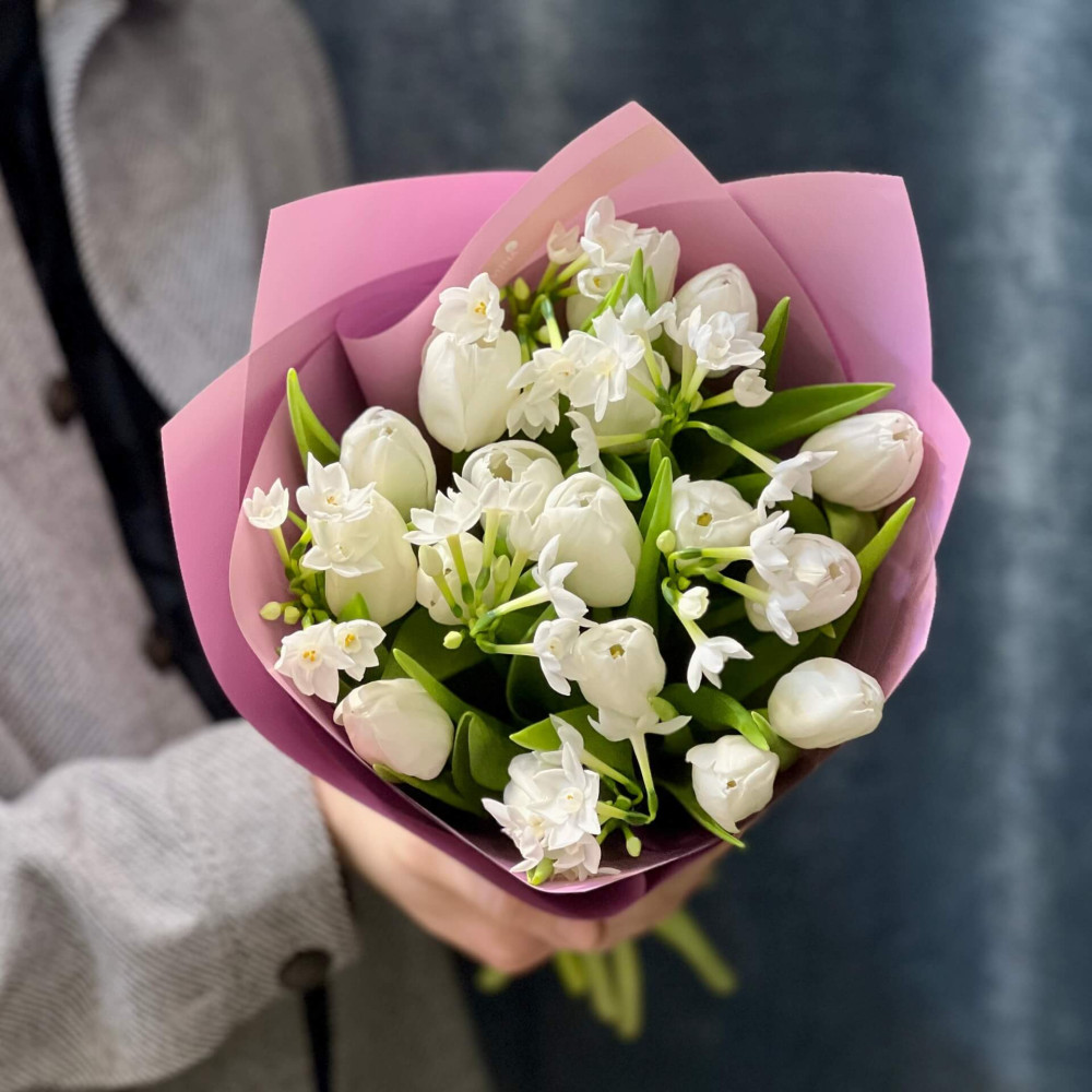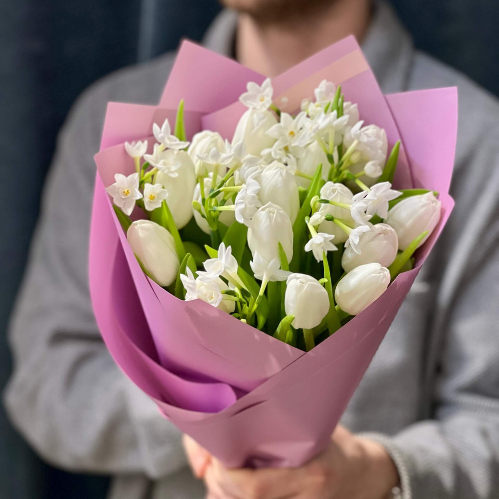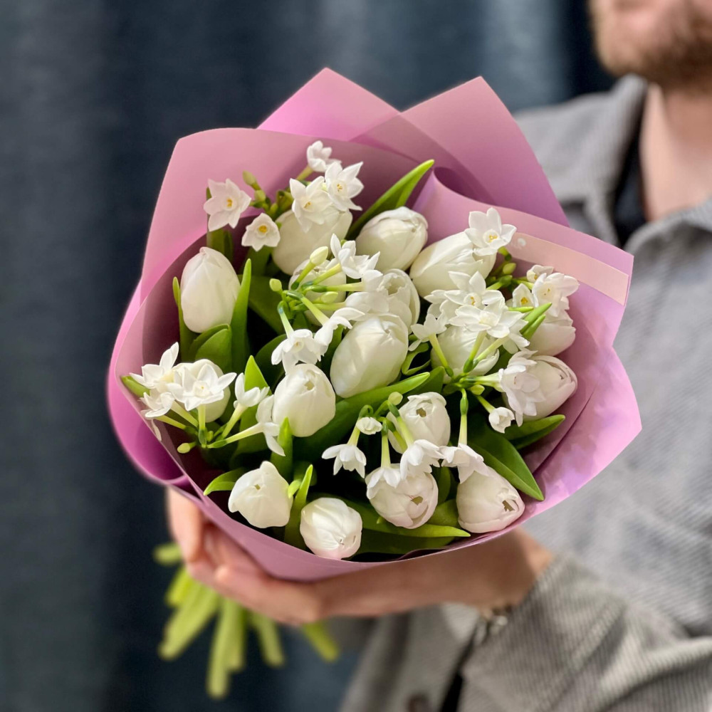 - Как заказать Ароматный букет с нарциссами и тюльпанами «Весенний флер»? ❯